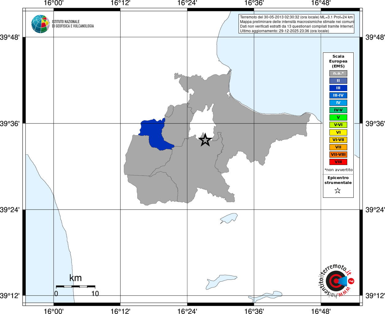 - Coordinate Epicentrali