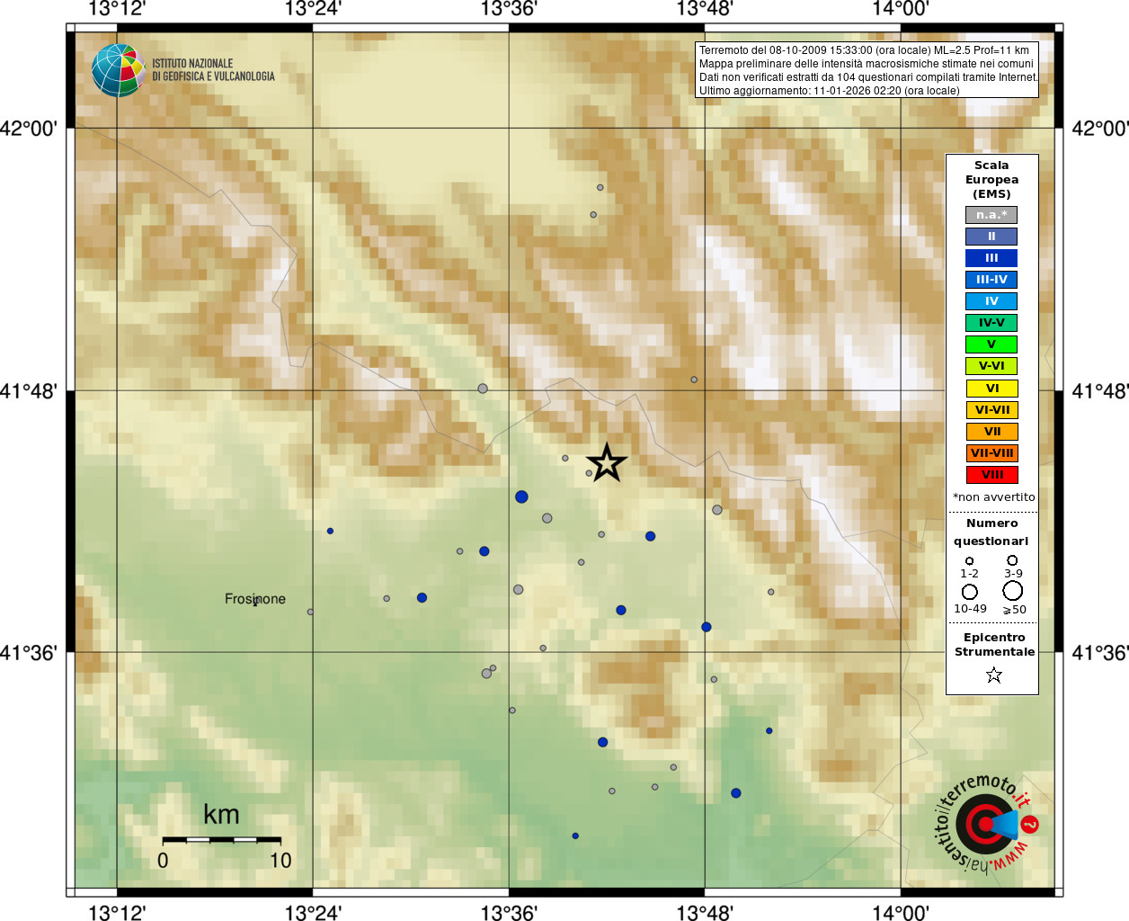 - 104 utilizzati per elaborare la mappa, su un totale di 110
