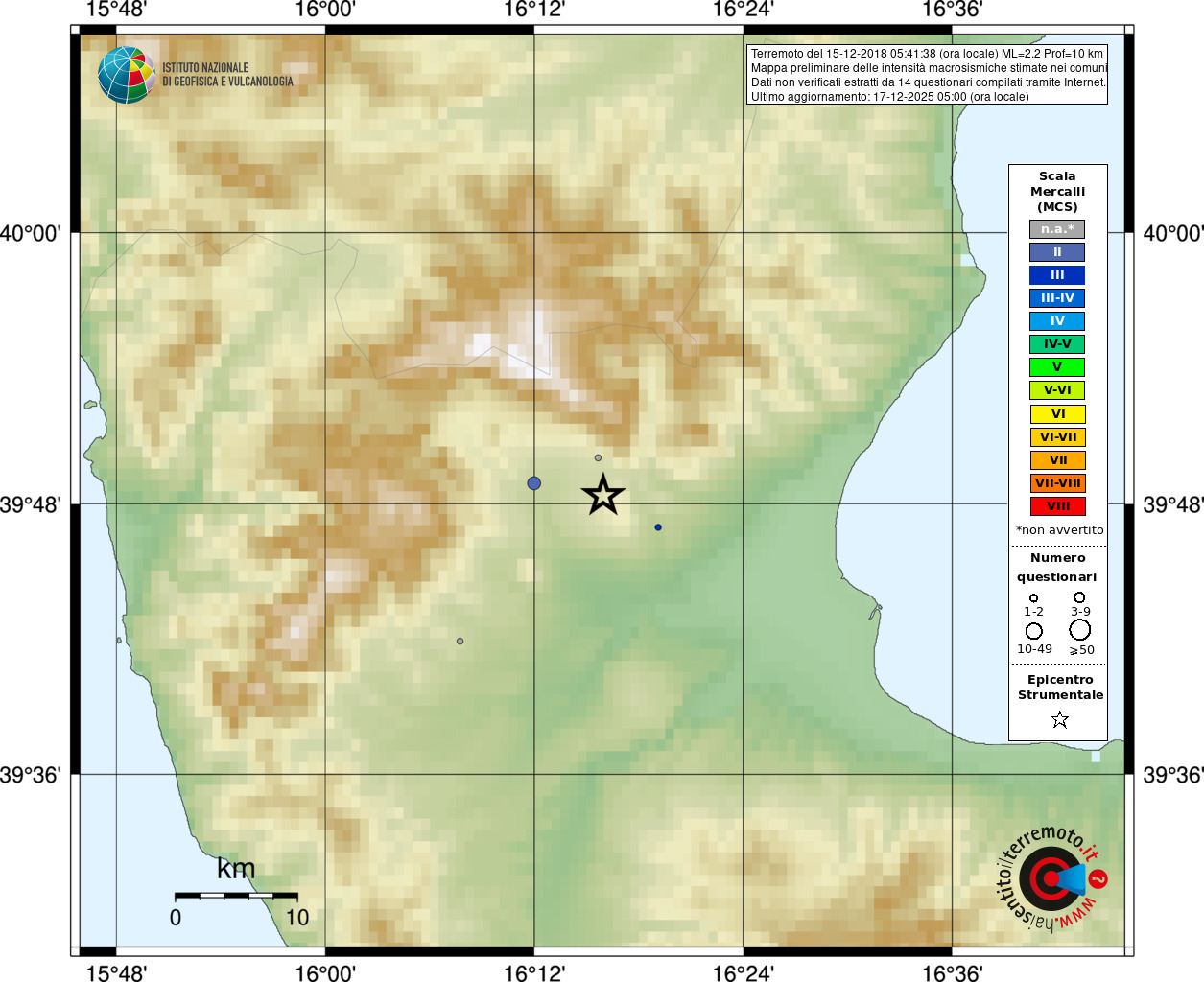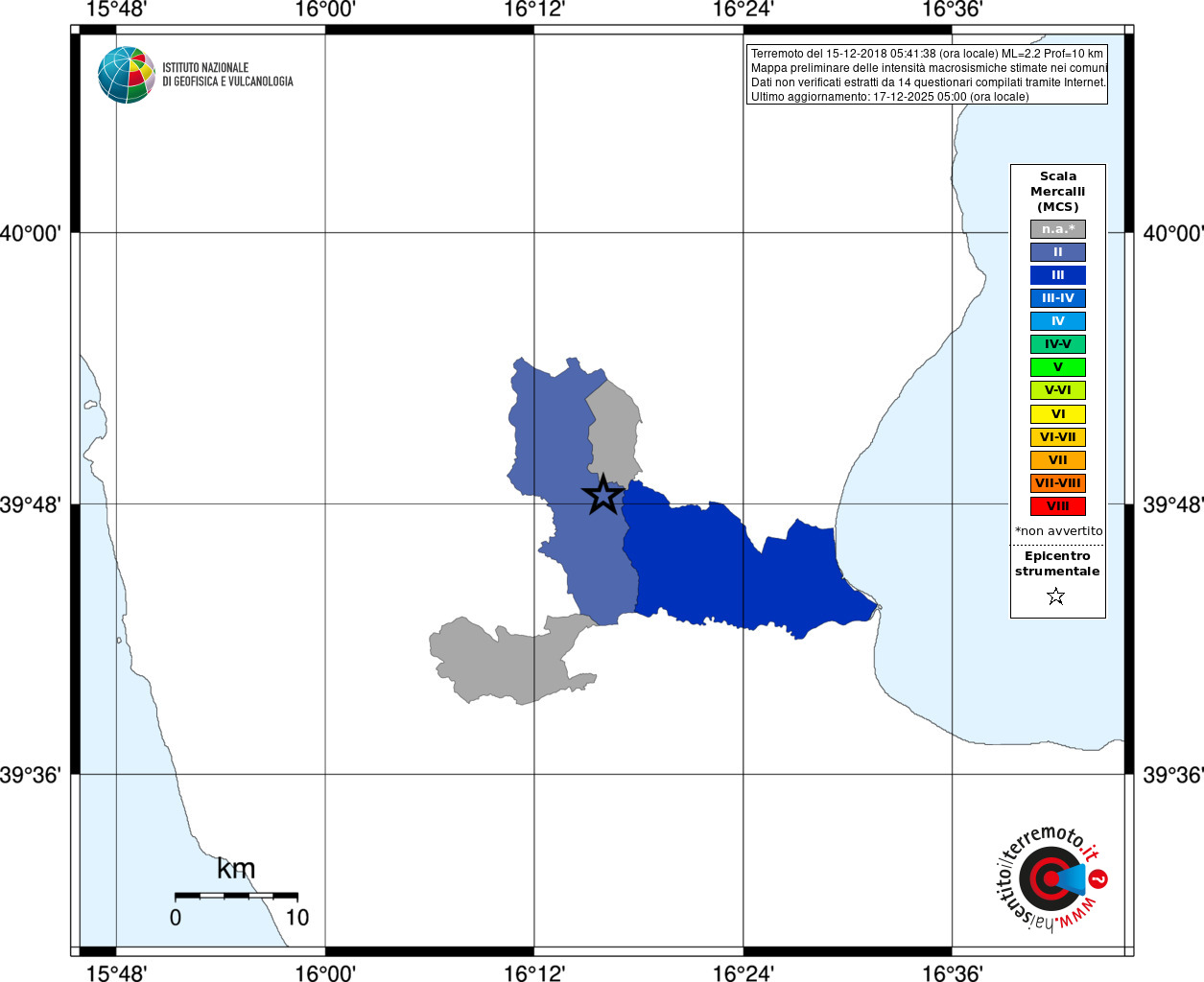 - Coordinate Epicentrali