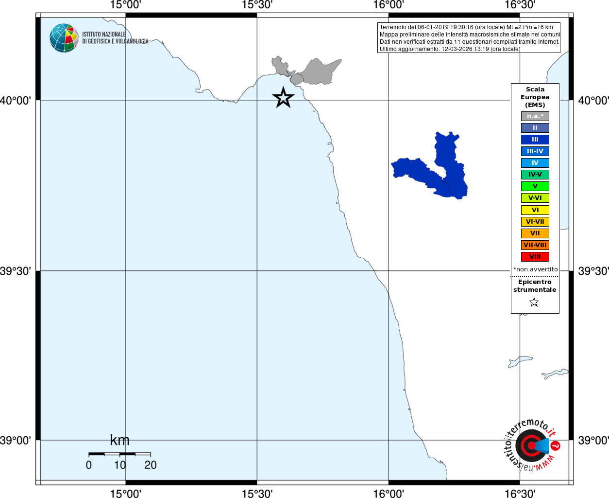 - Coordinate Epicentrali
