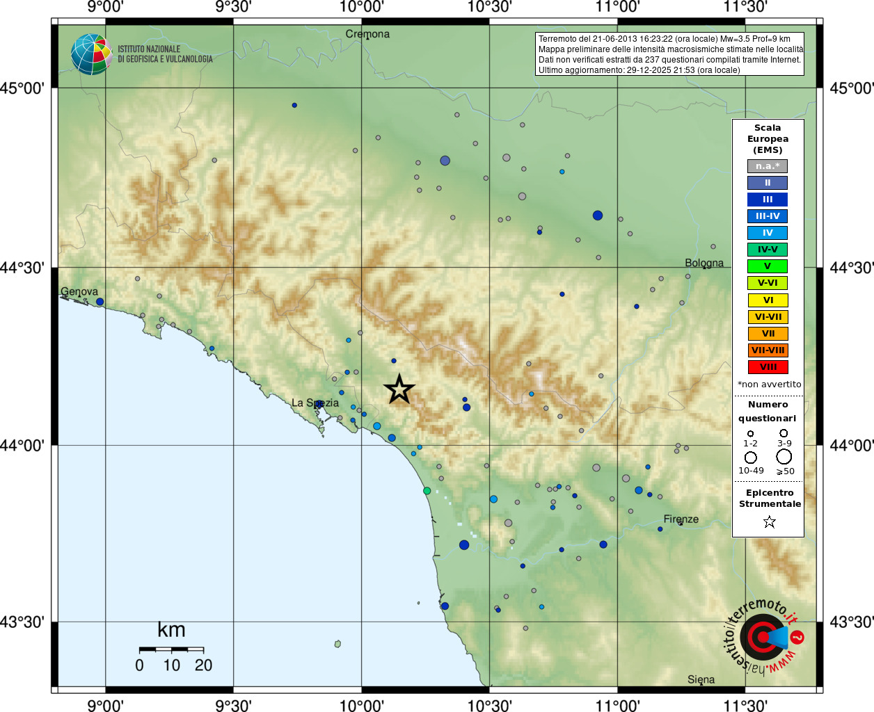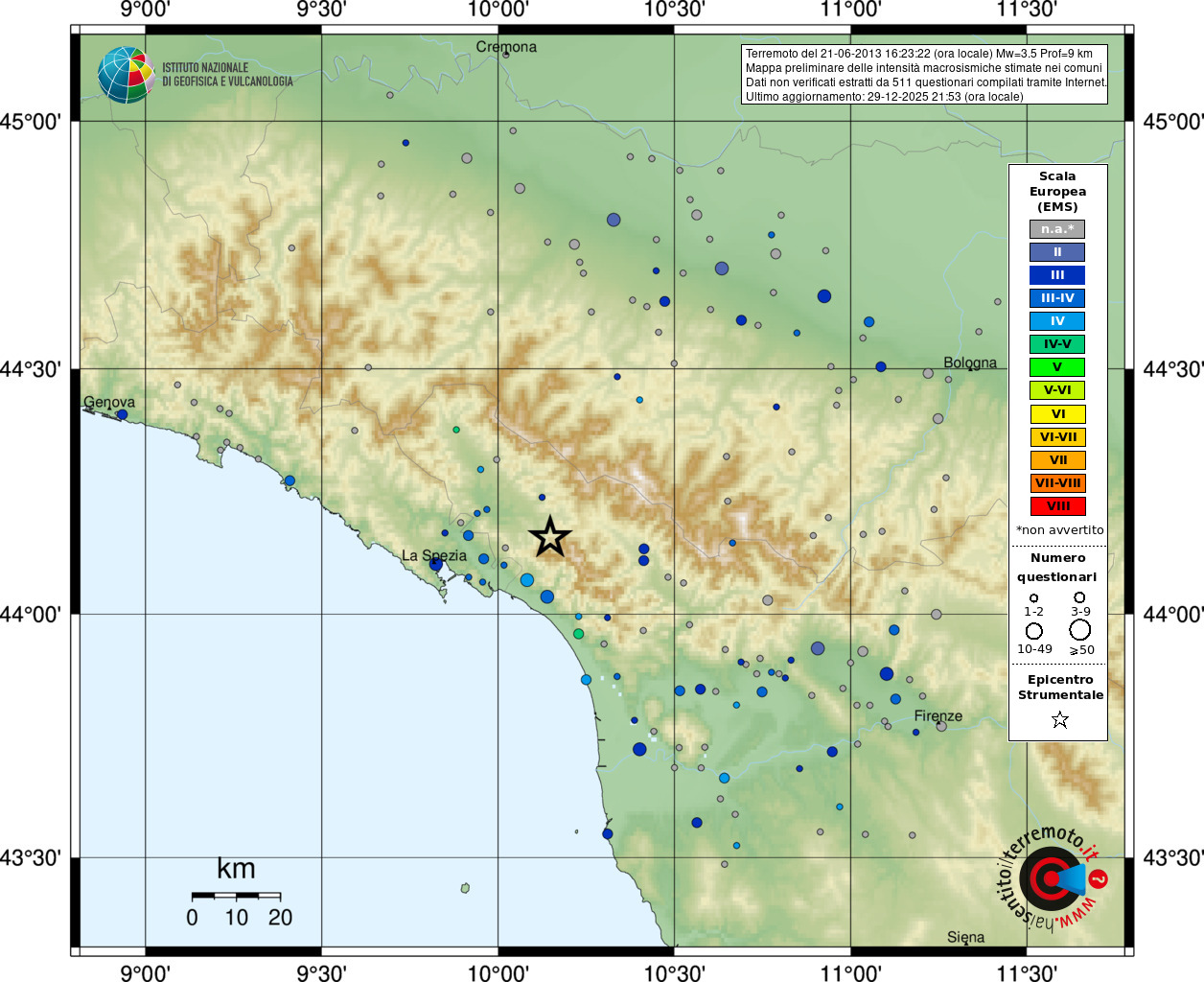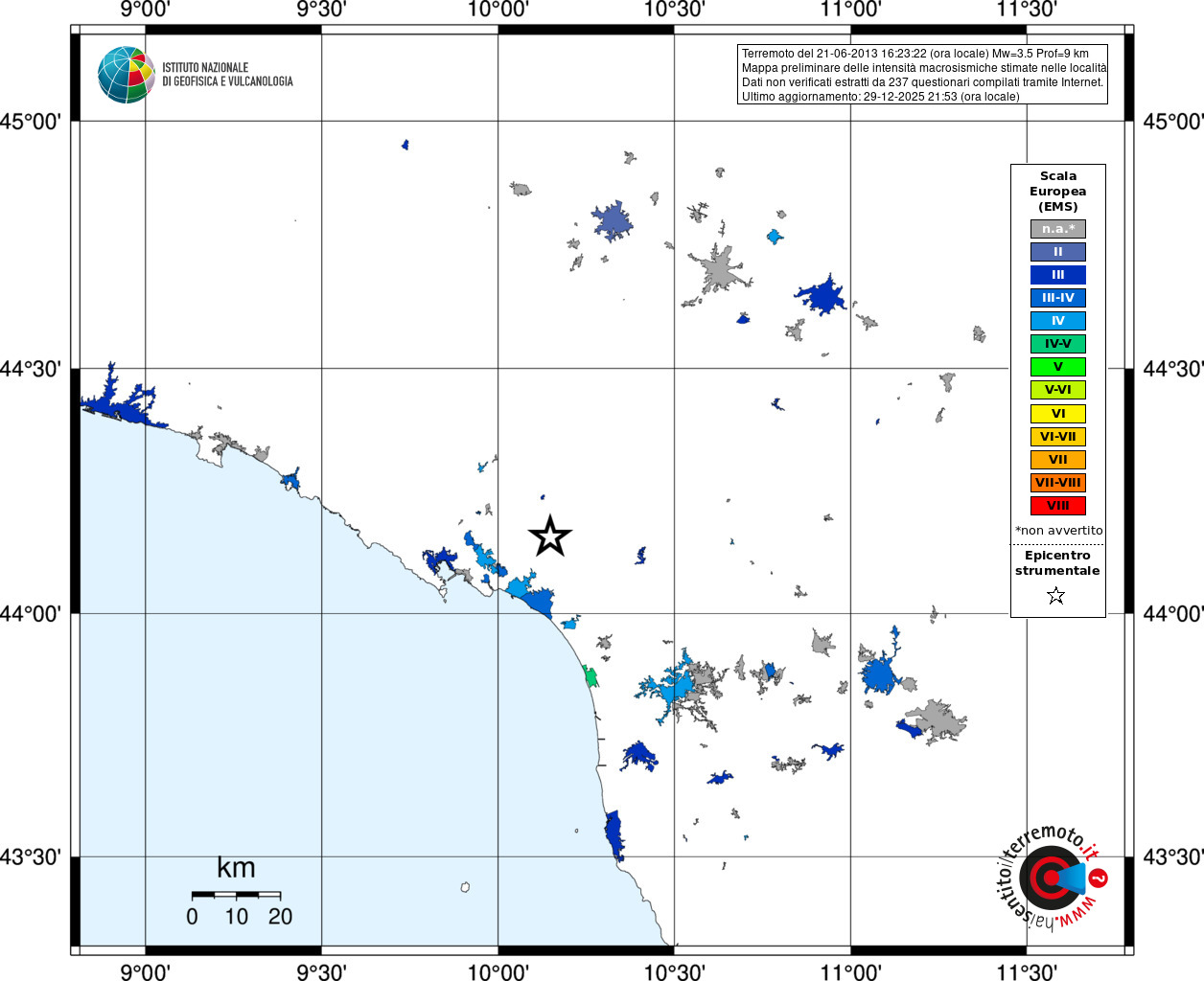 - Coordinate Epicentrali