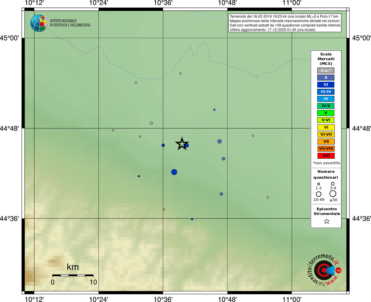 - 109 utilizzati per elaborare la mappa, su un totale di 125