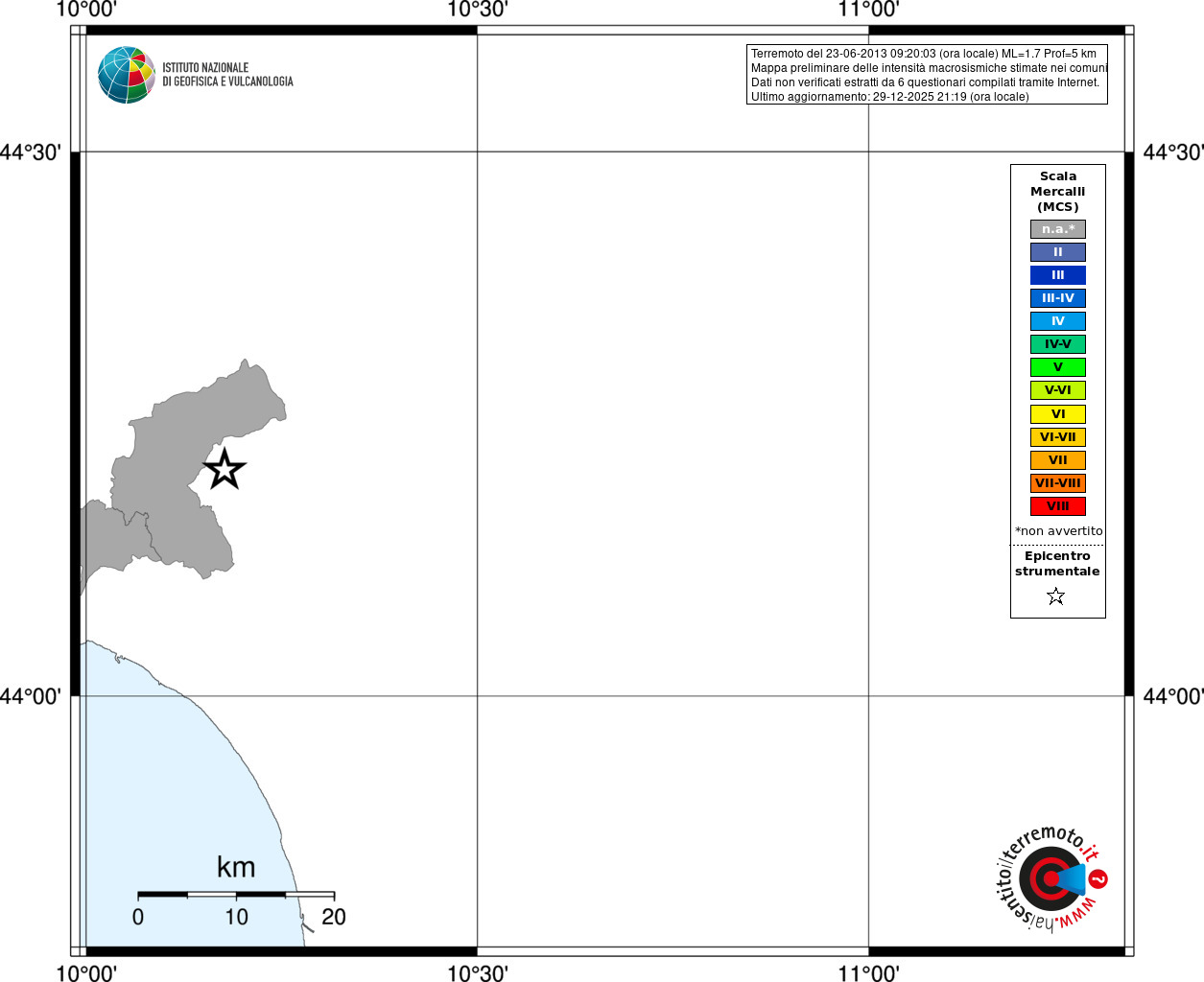 - Coordinate Epicentrali