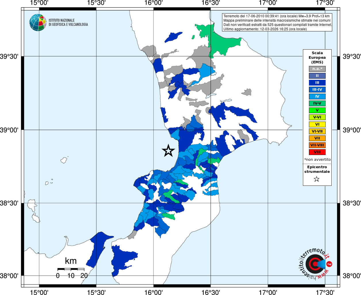 - Coordinate Epicentrali