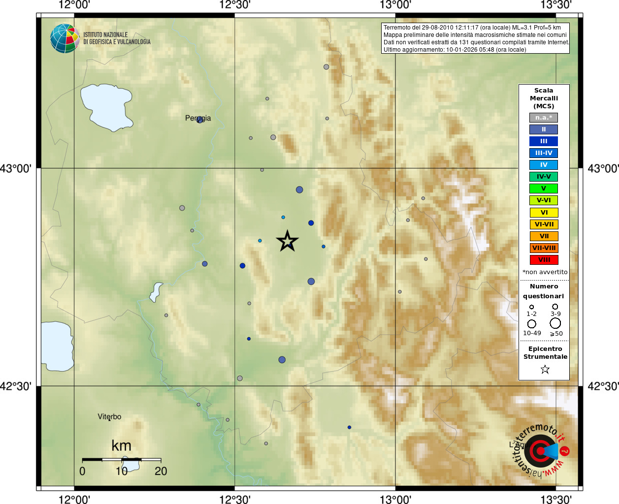 - 131 utilizzati per elaborare la mappa, su un totale di 145