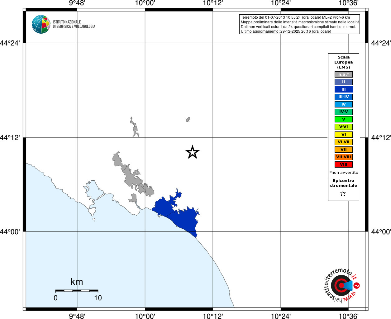 - Coordinate Epicentrali