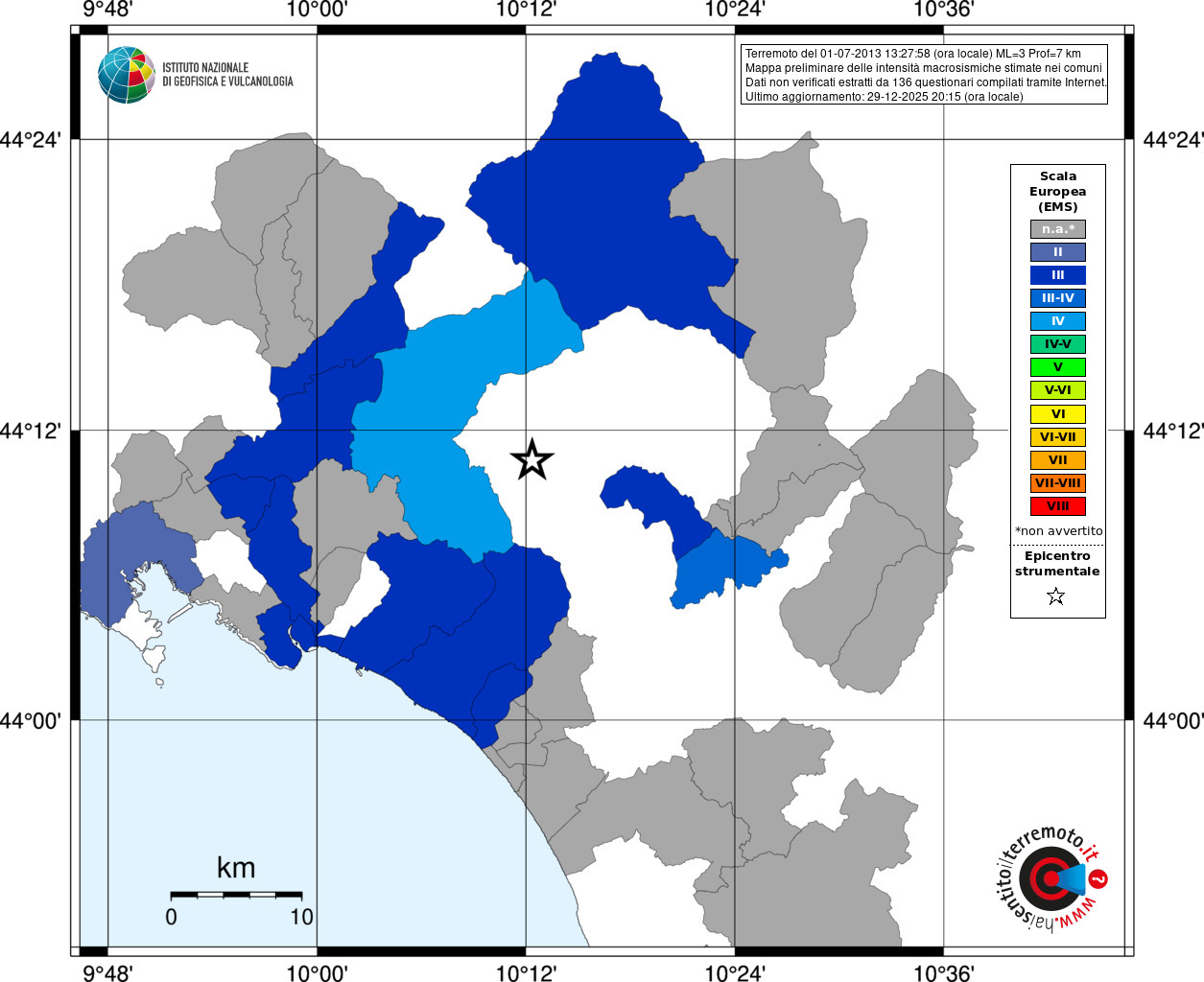 - Coordinate Epicentrali