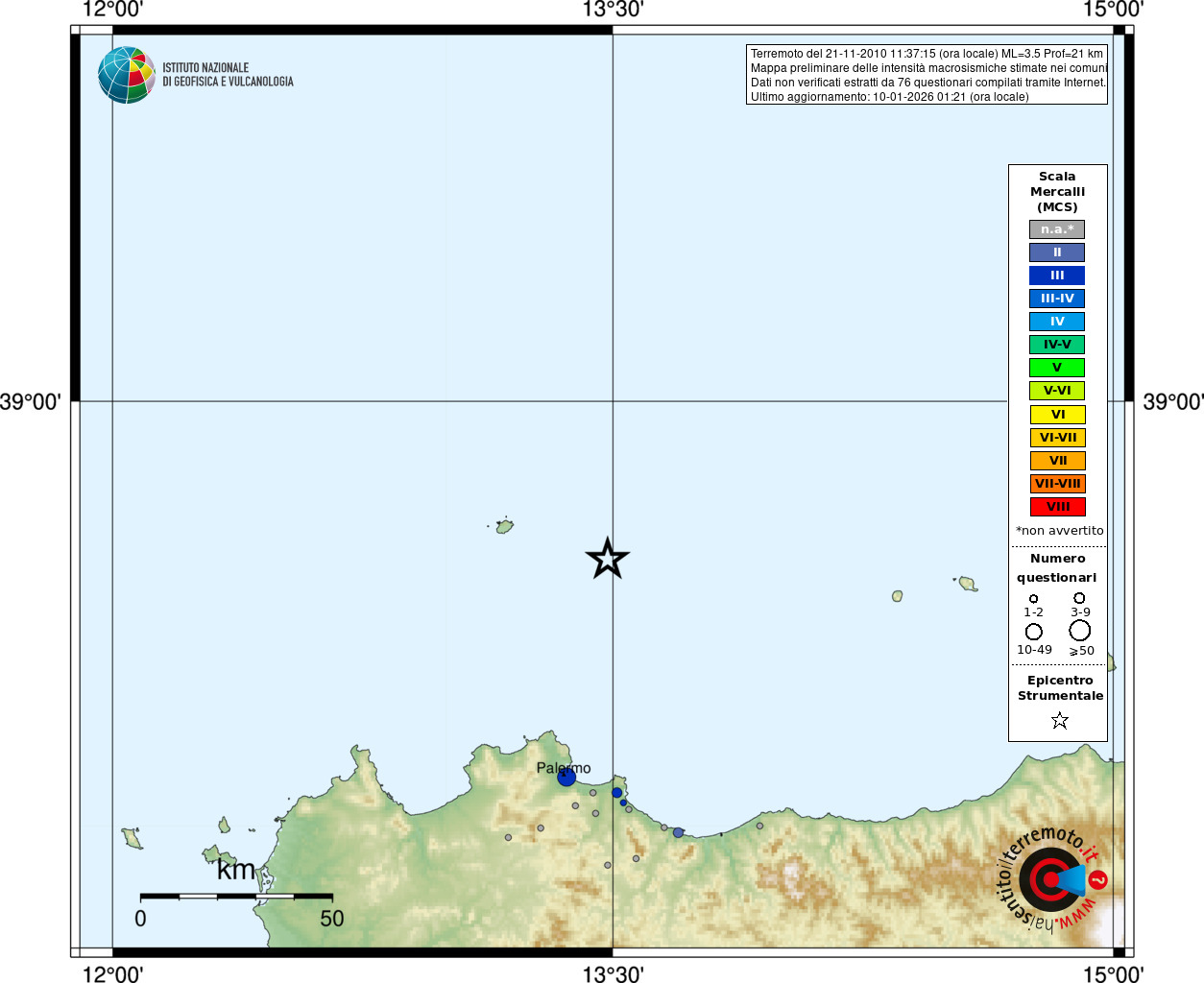 - 76 utilizzati per elaborare la mappa, su un totale di 89