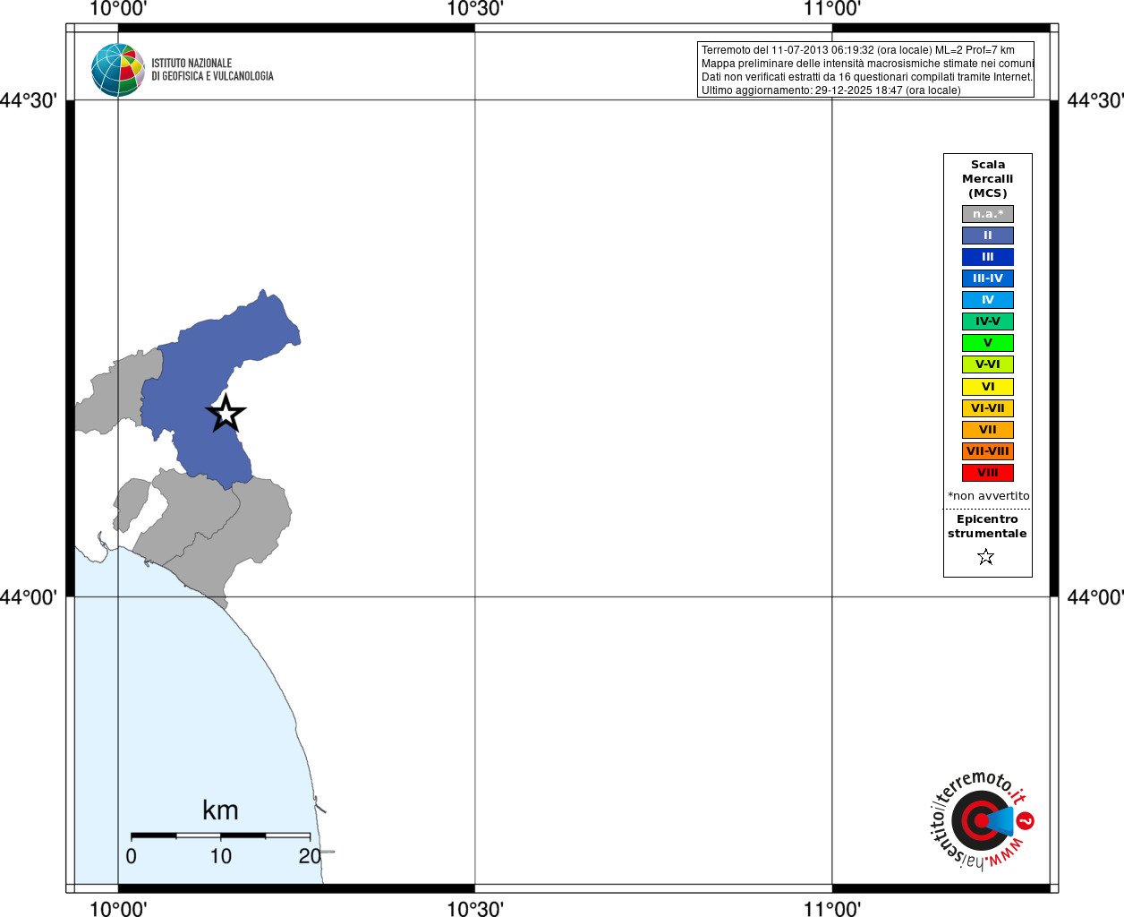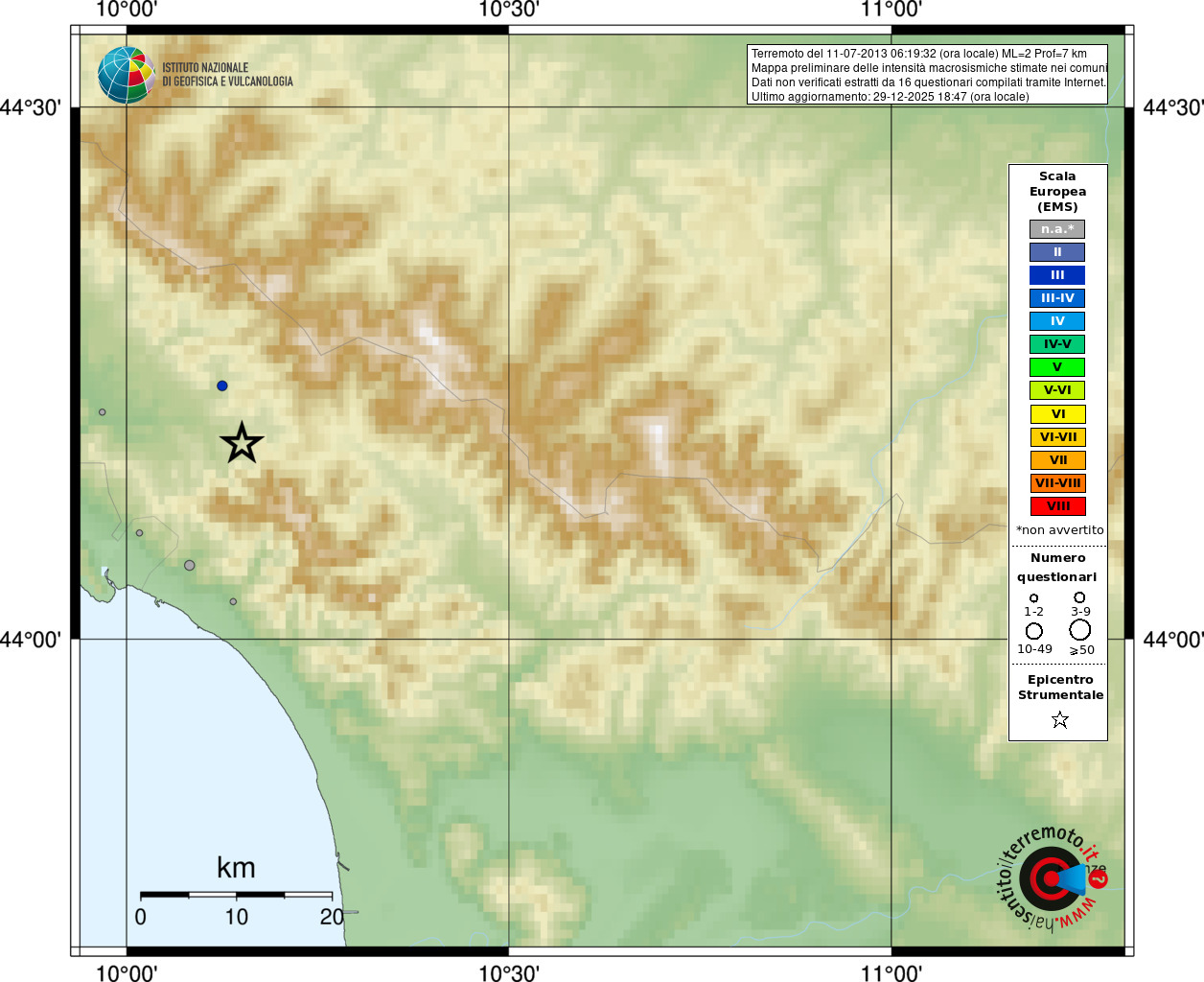 - Coordinate Epicentrali