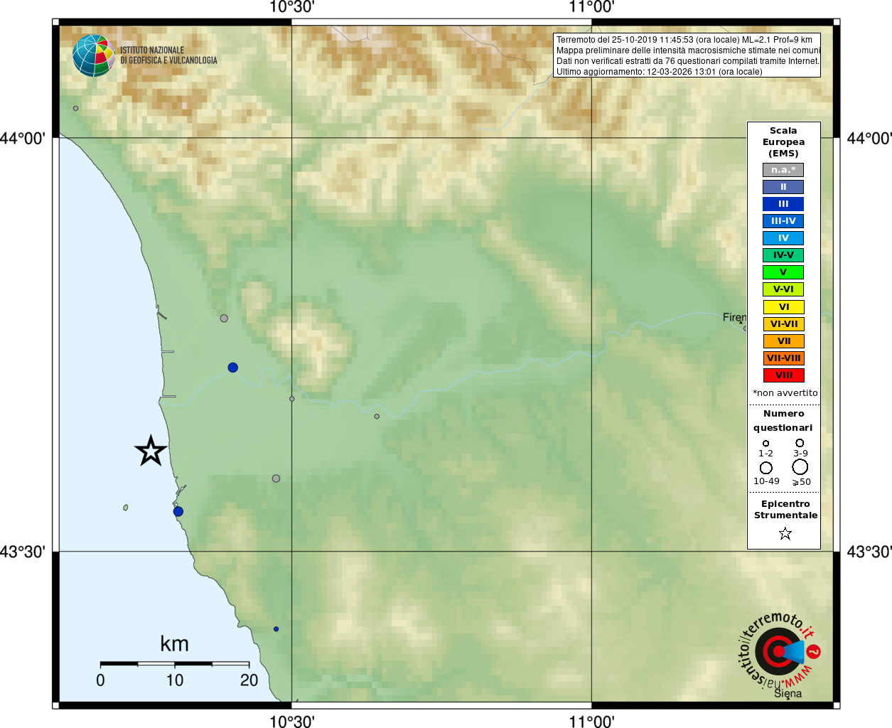 - 76 utilizzati per elaborare la mappa, su un totale di 79