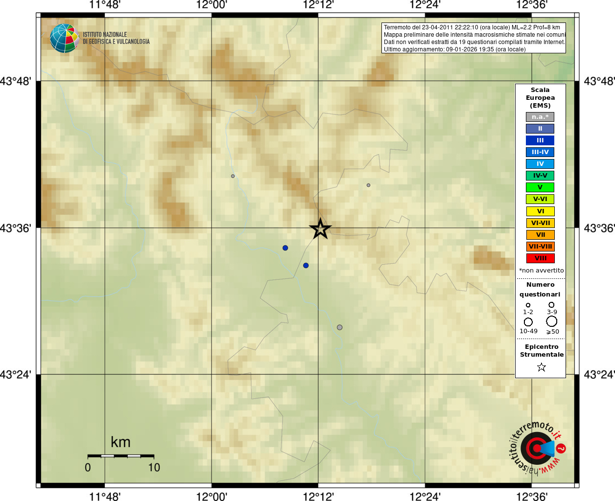 - 19 utilizzati per elaborare la mappa, su un totale di 19