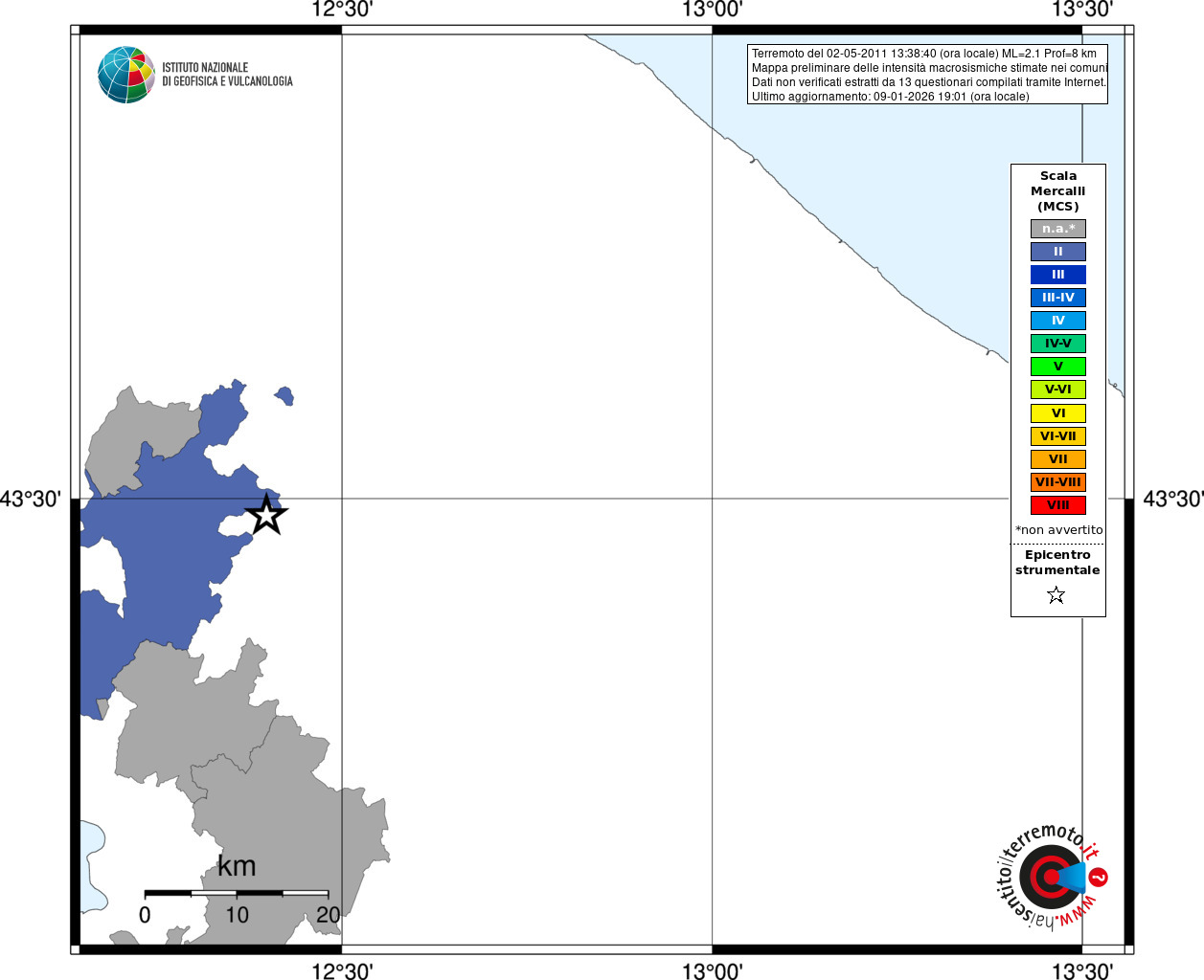 - 13 utilizzati per elaborare la mappa, su un totale di 13