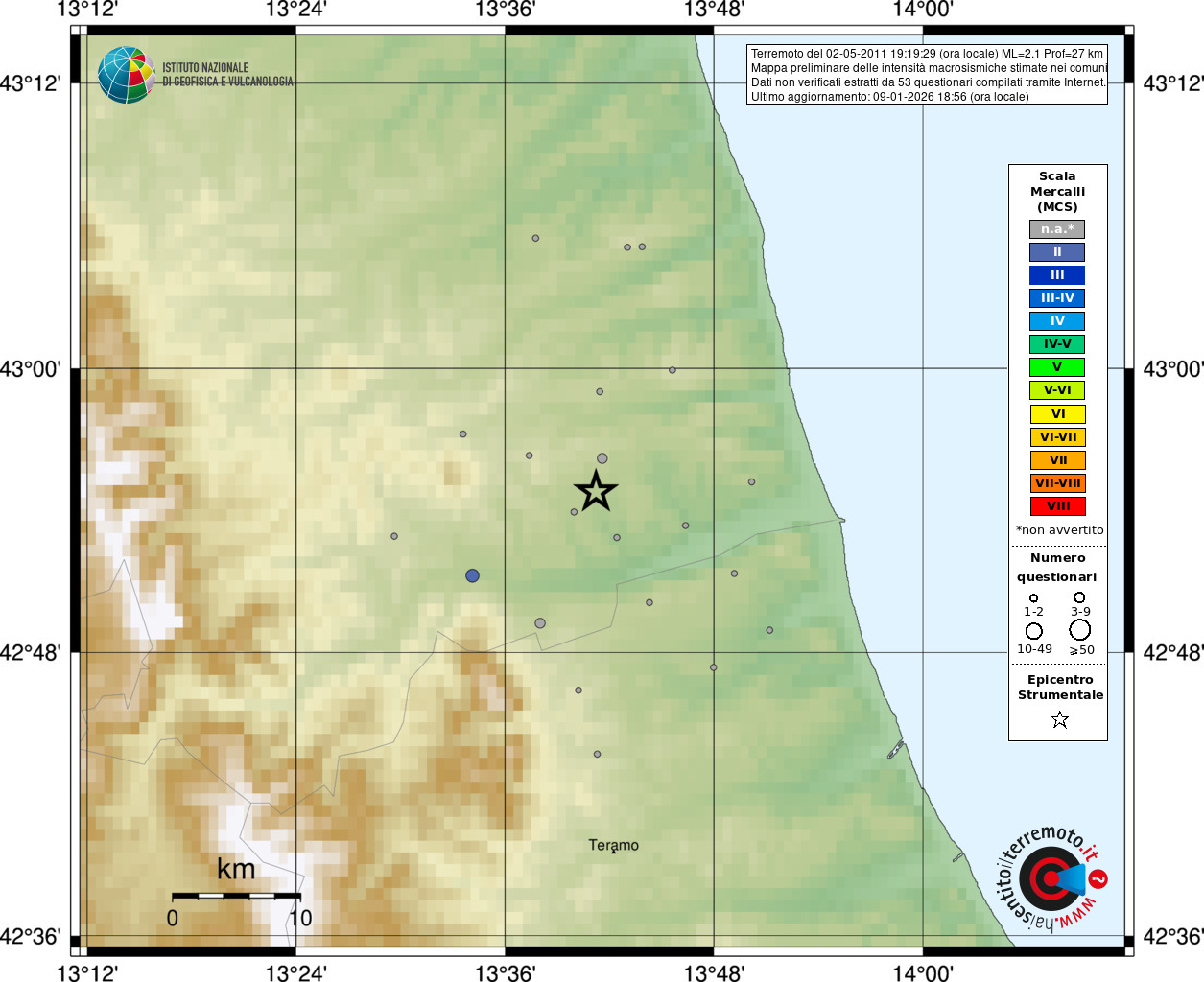 - 53 utilizzati per elaborare la mappa, su un totale di 57