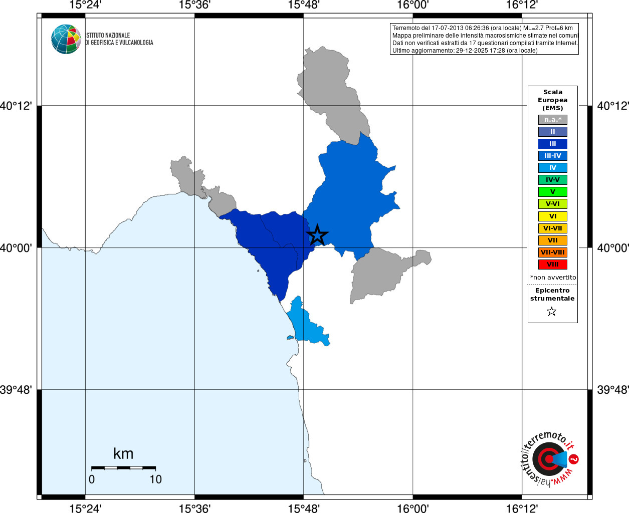 - Coordinate Epicentrali