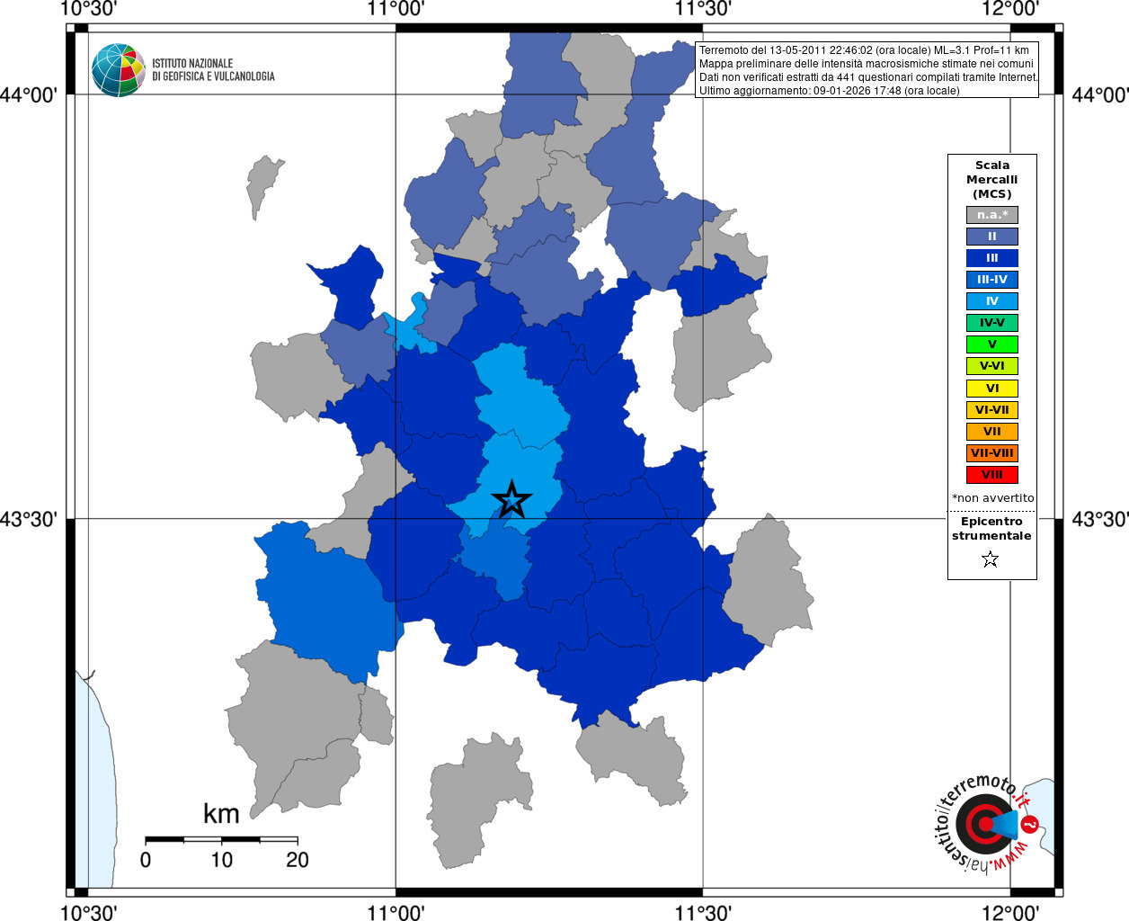 - 441 utilizzati per elaborare la mappa, su un totale di 464