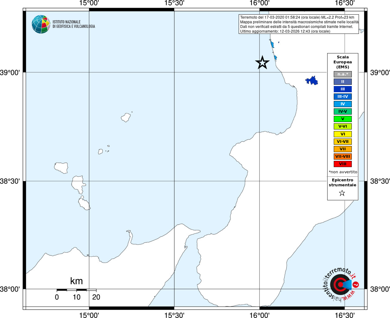 - Coordinate Epicentrali