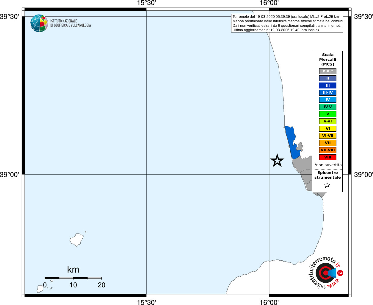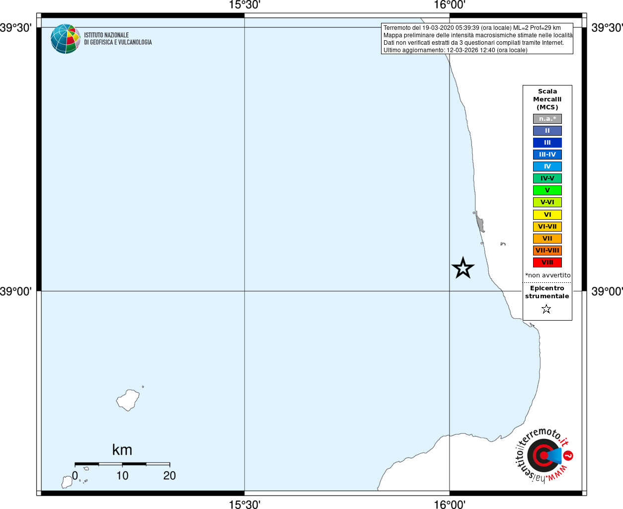 - Coordinate Epicentrali