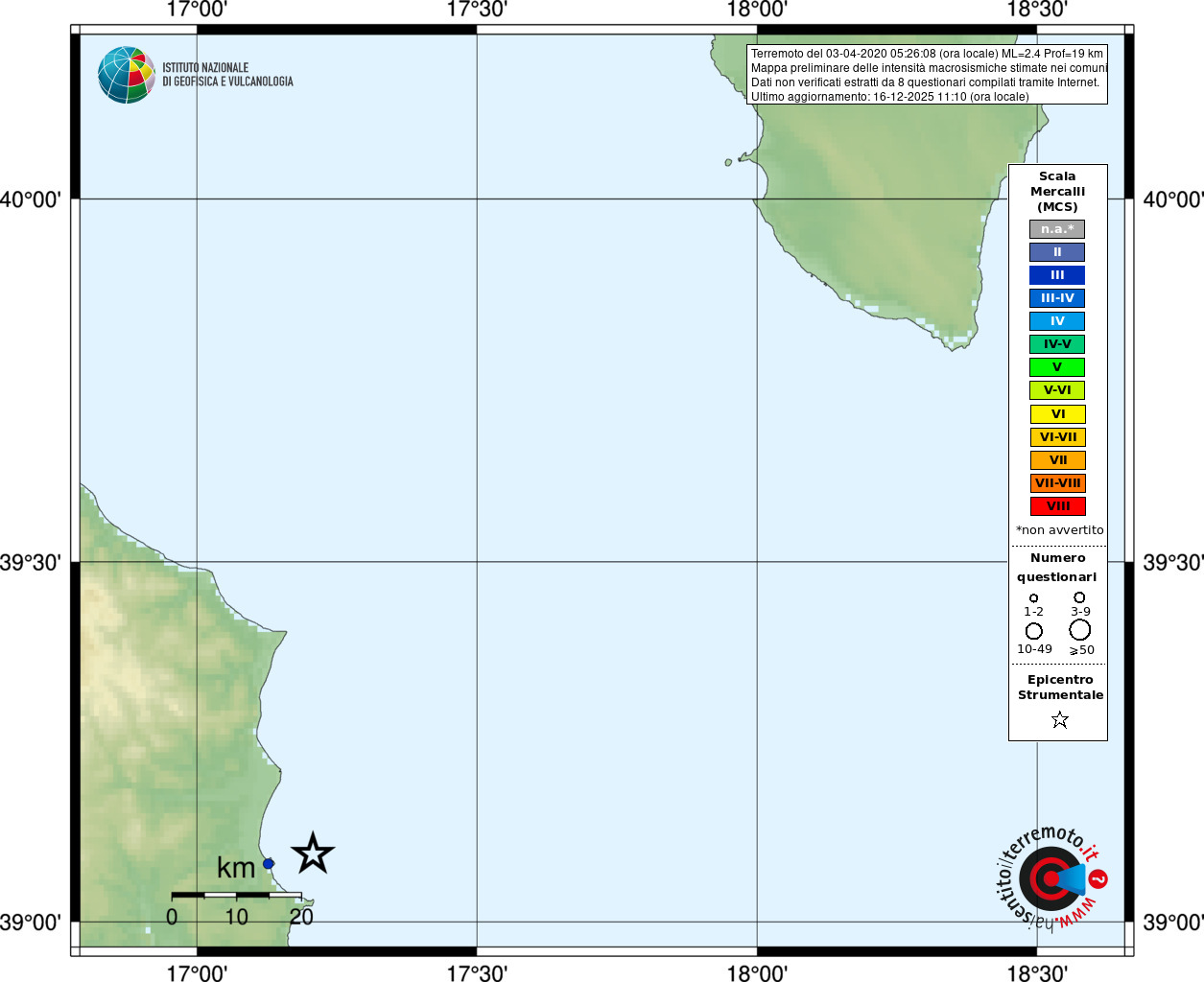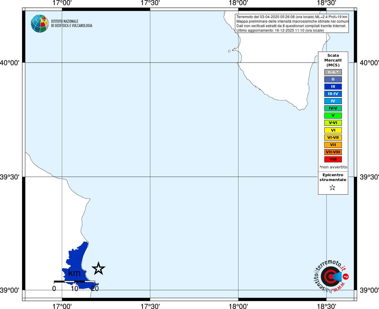 - Coordinate Epicentrali