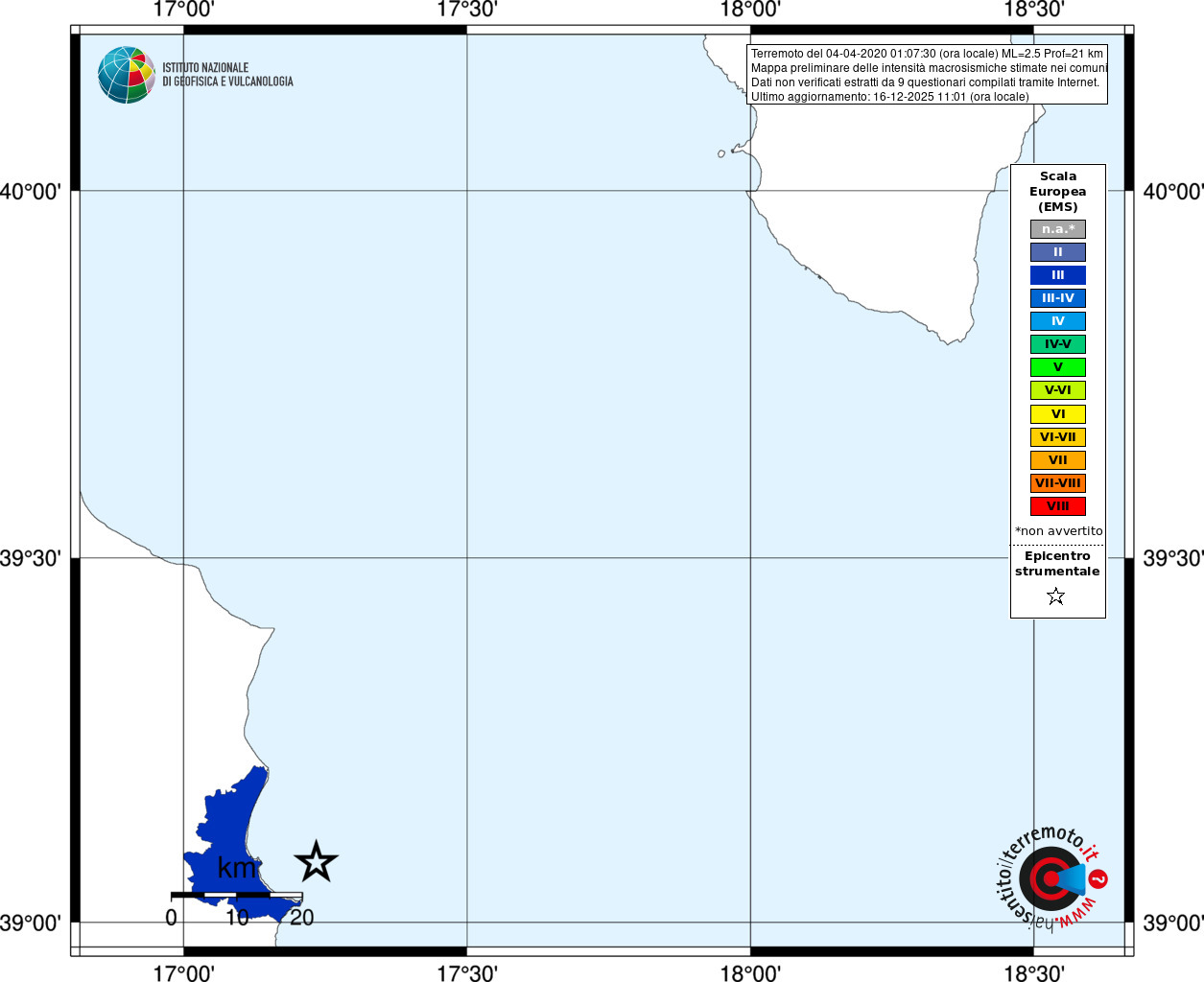 - Coordinate Epicentrali
