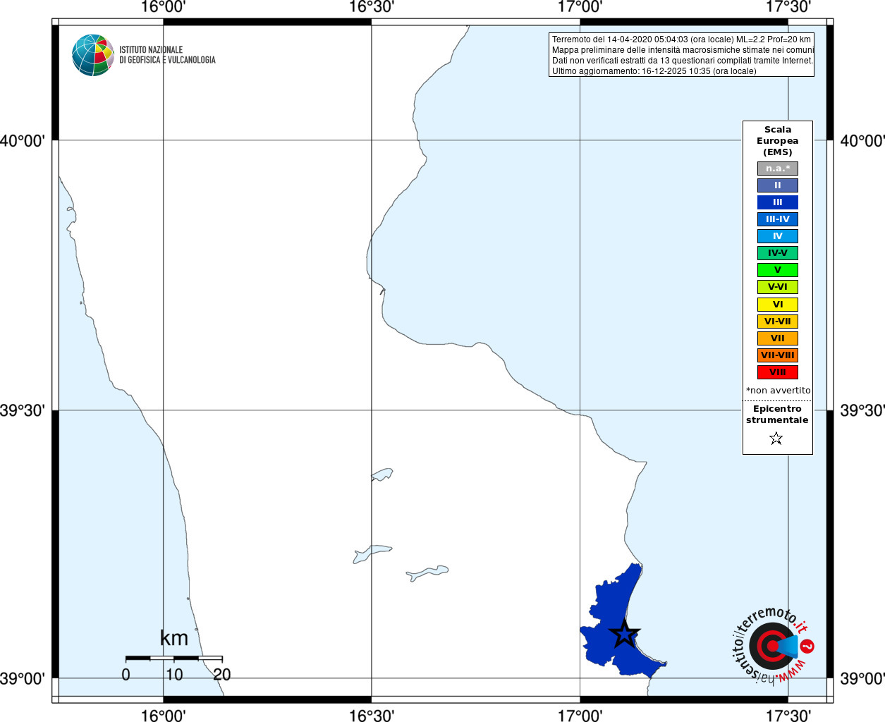 - Coordinate Epicentrali