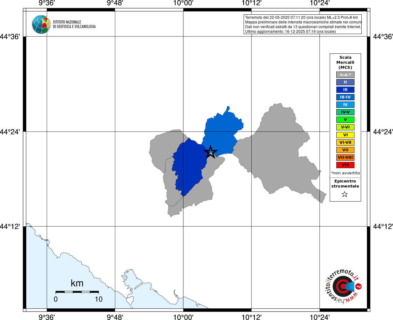 - Coordinate Epicentrali