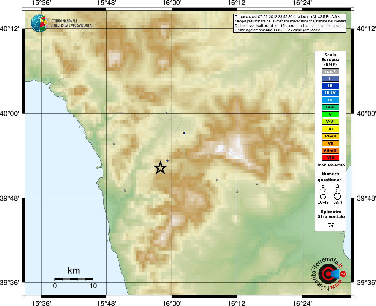 - Coordinate Epicentrali