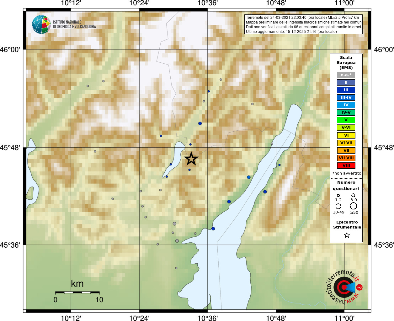 - 67 utilizzati per elaborare la mappa, su un totale di 73