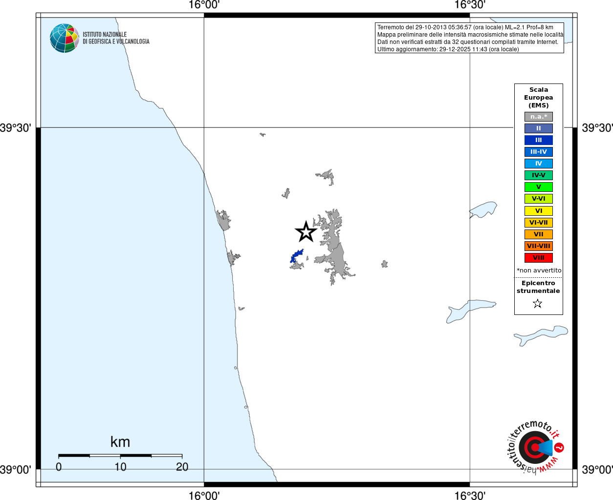 - Coordinate Epicentrali