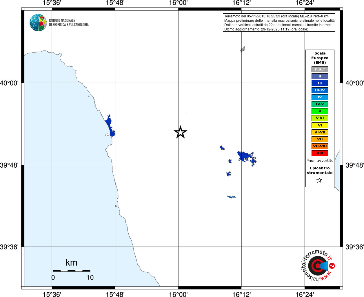 - Coordinate Epicentrali