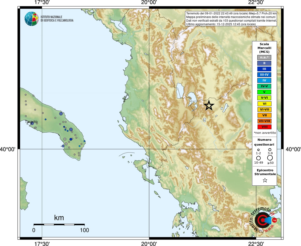 - 103 utilizzati per elaborare la mappa, su un totale di 113