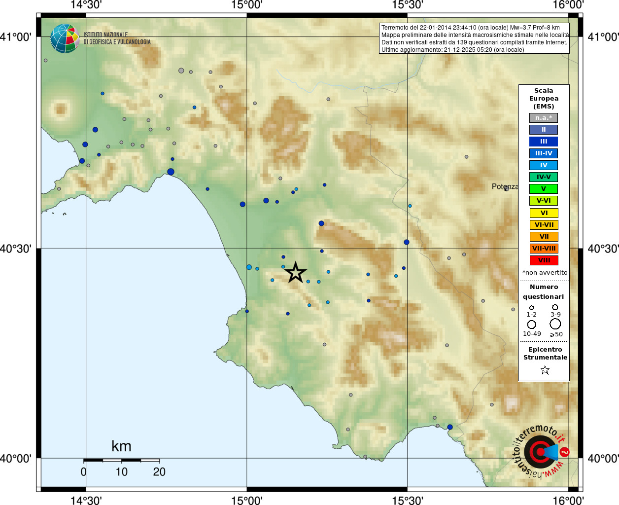 - Coordinate Epicentrali