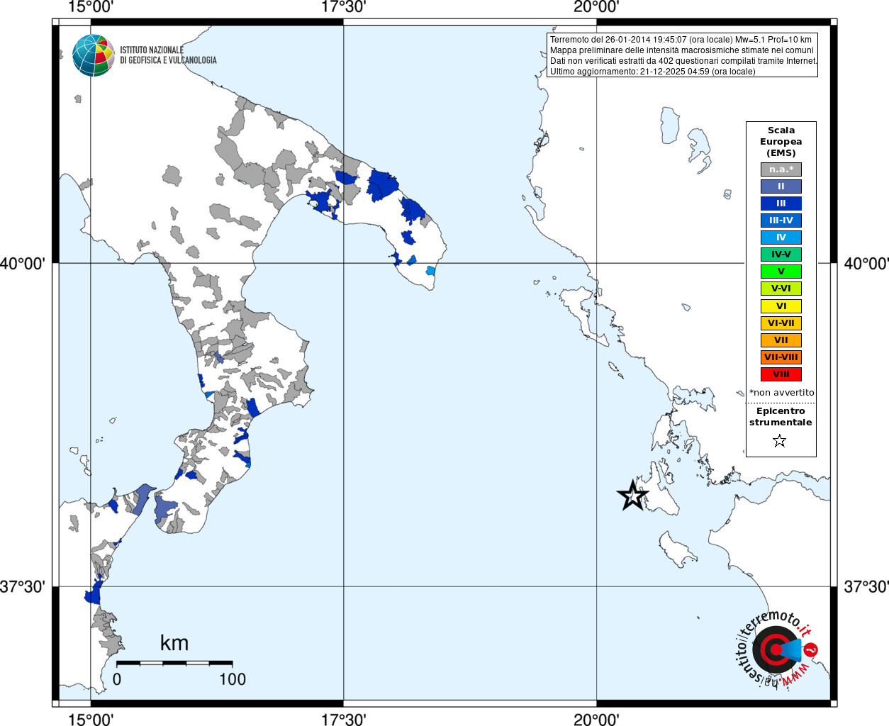 - 402 utilizzati per elaborare la mappa, su un totale di 408