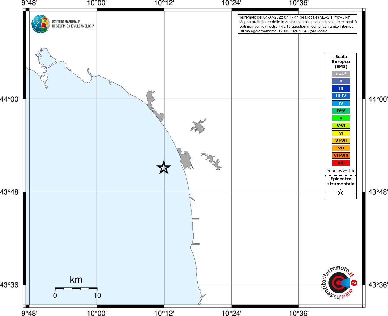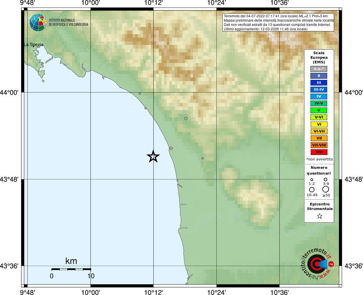 - Coordinate Epicentrali