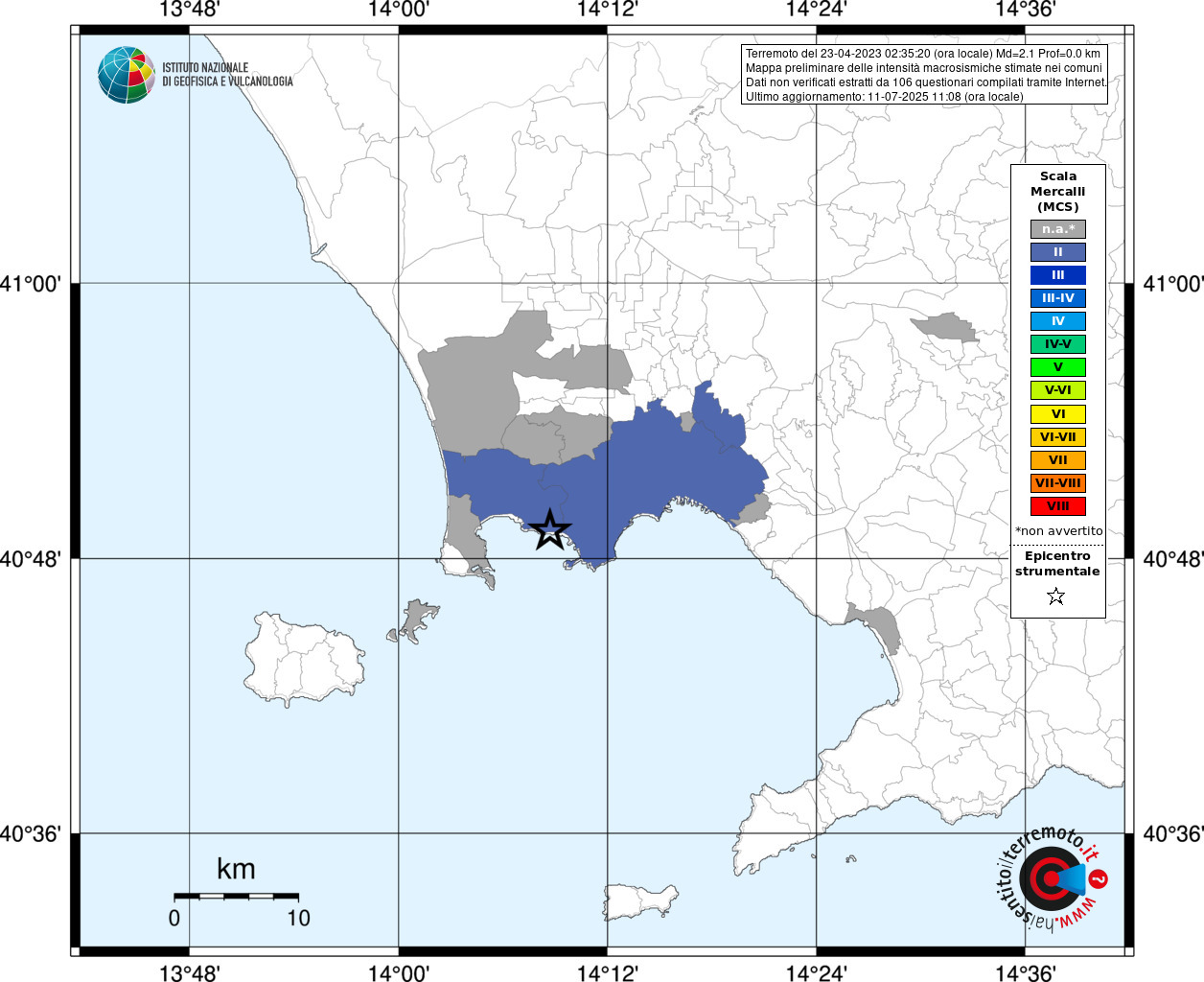 - 106 utilizzati per elaborare la mappa, su un totale di 109