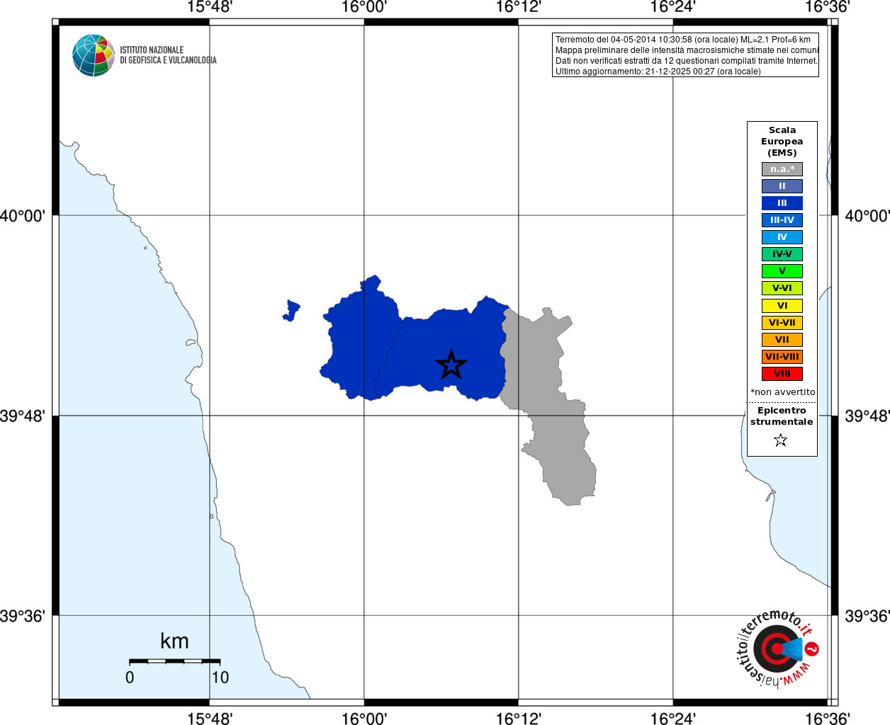 - Coordinate Epicentrali