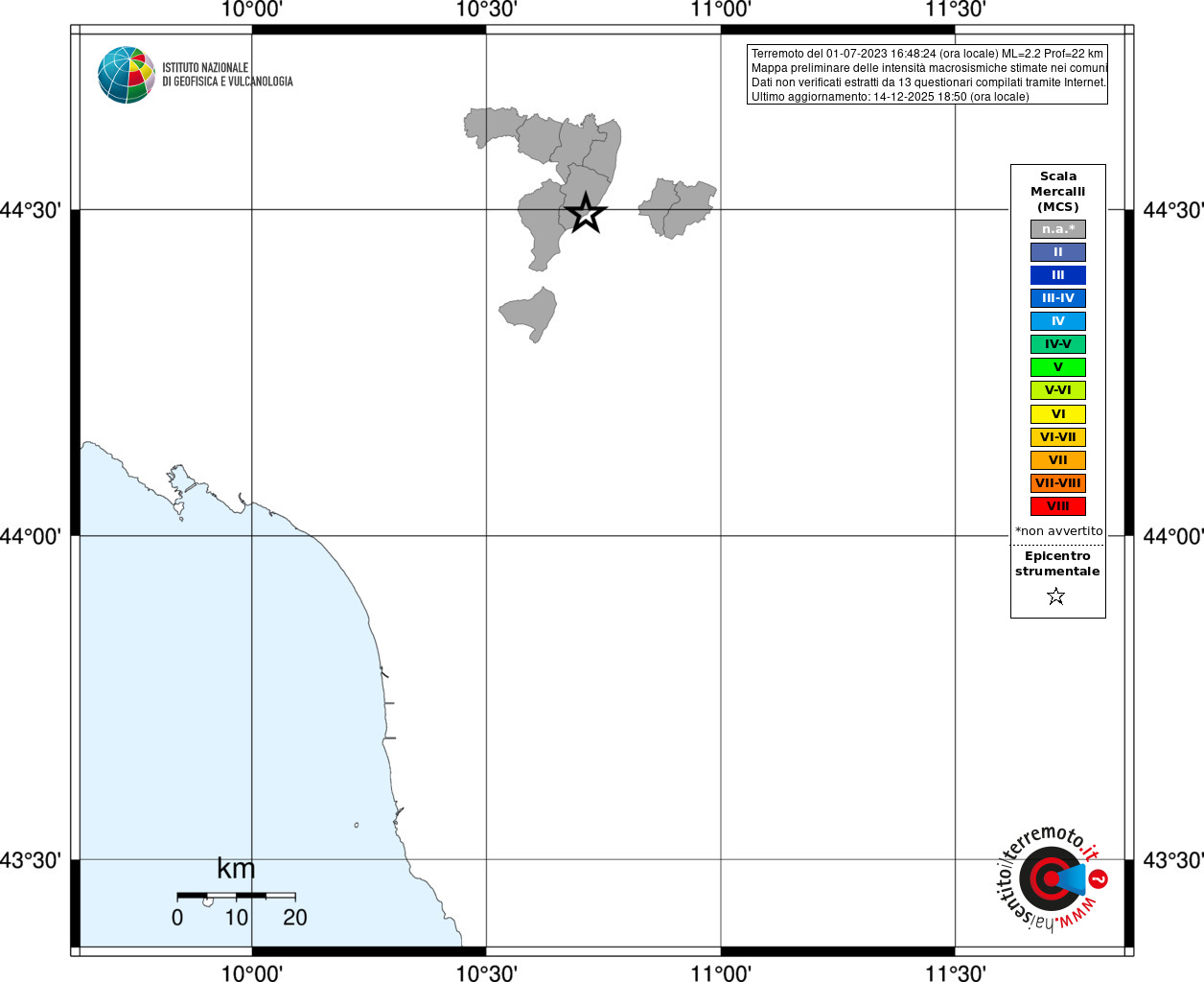 - Coordinate Epicentrali