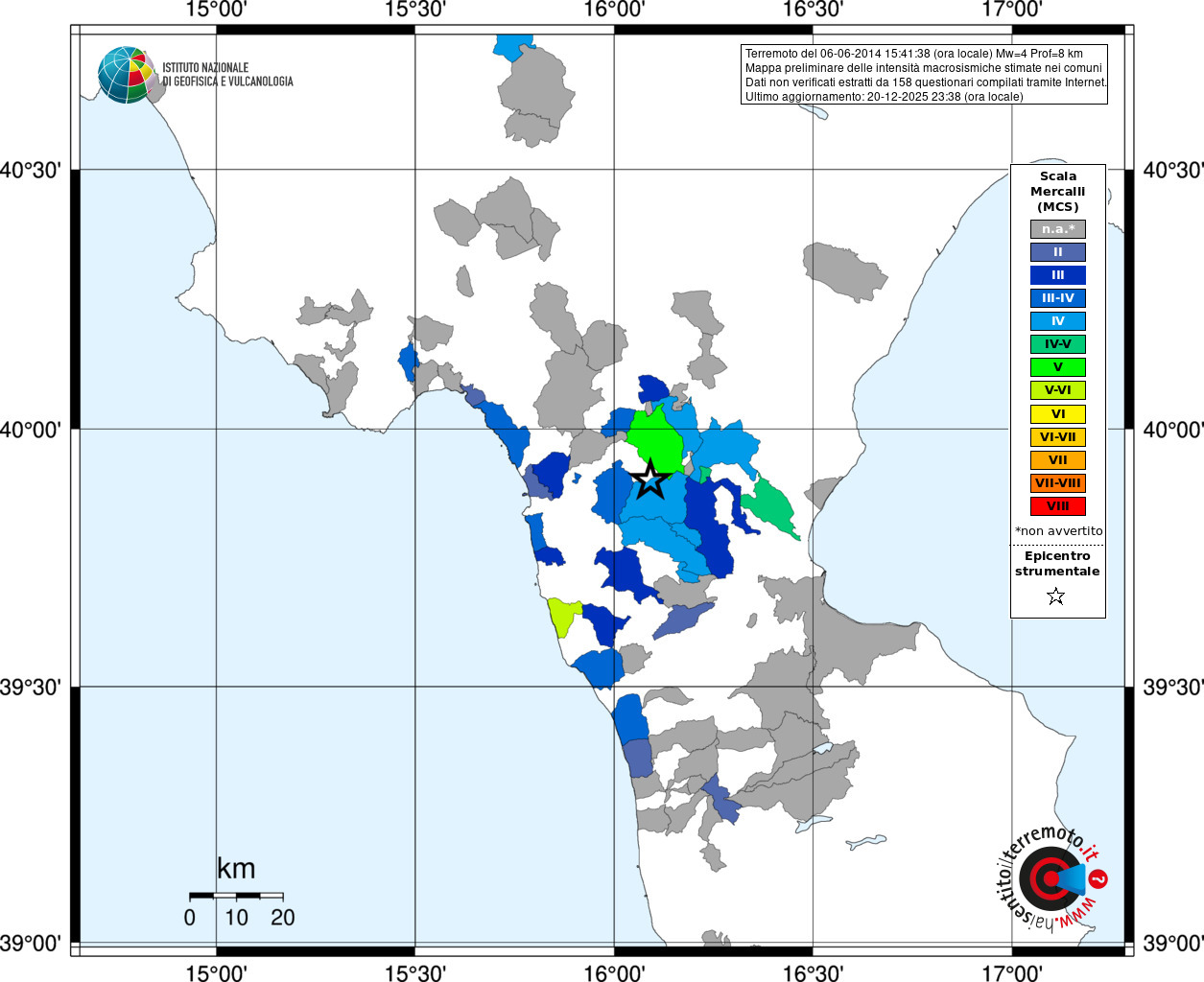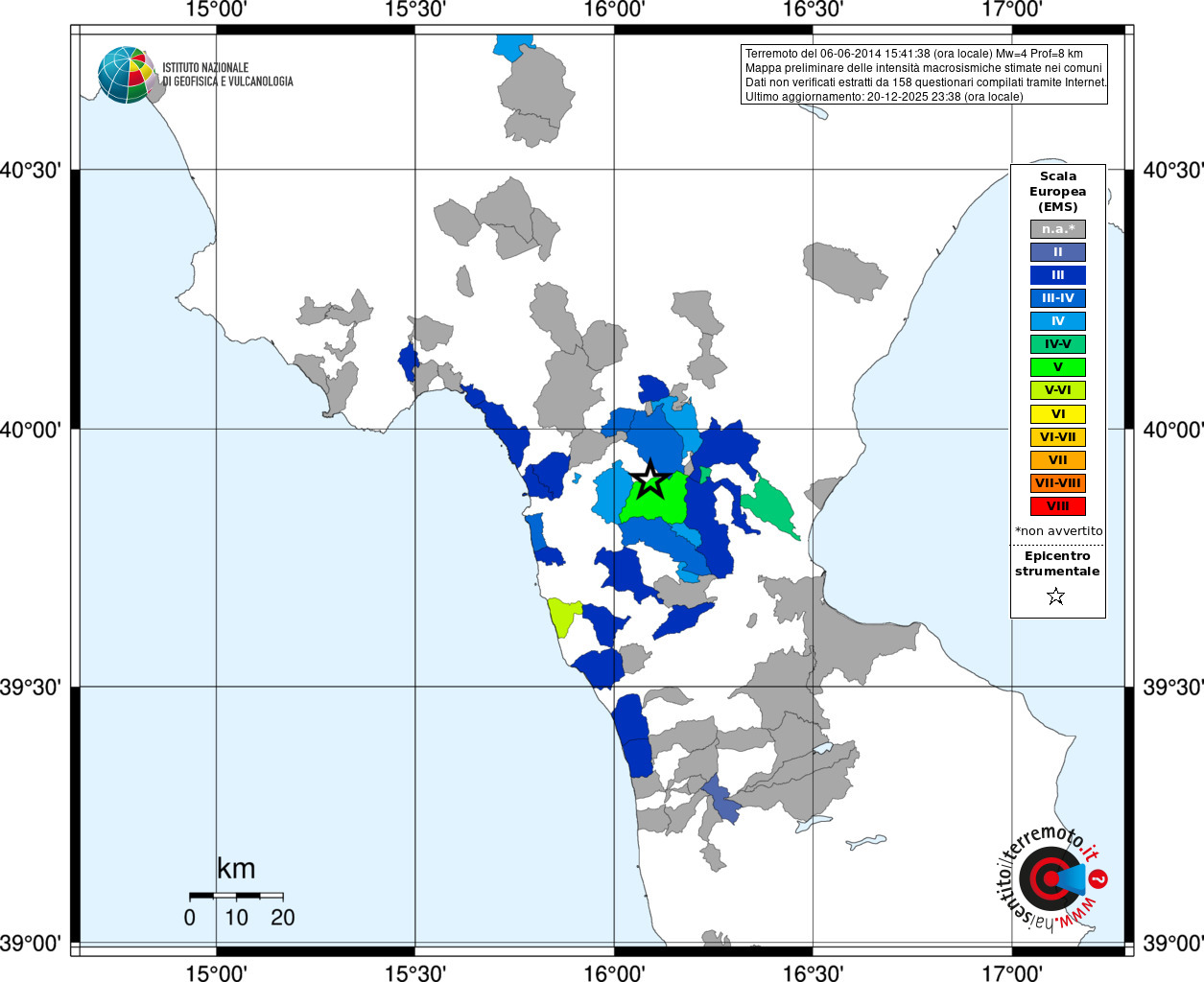 - 158 utilizzati per elaborare la mappa, su un totale di 164