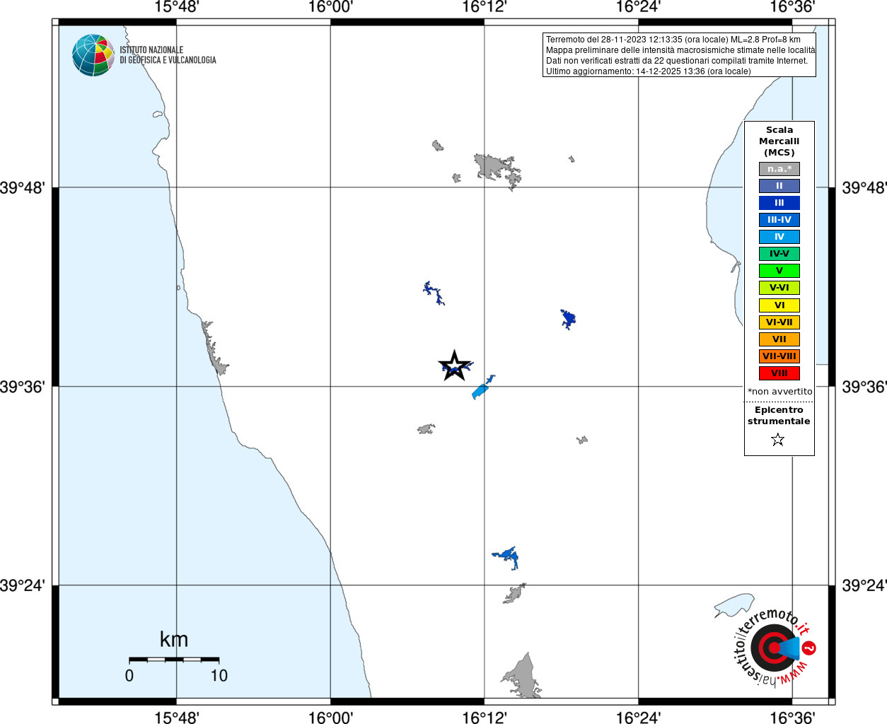 - Coordinate Epicentrali
