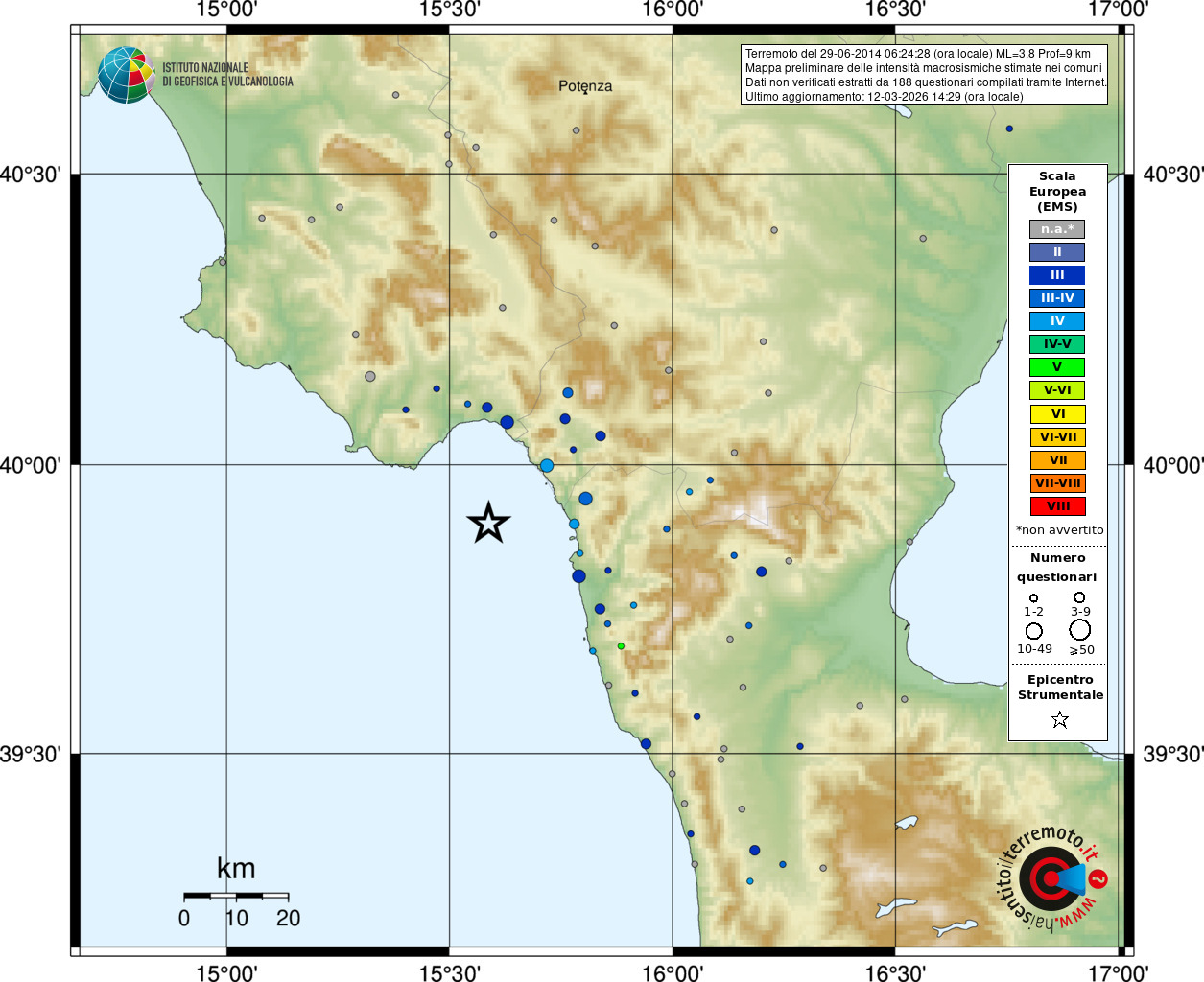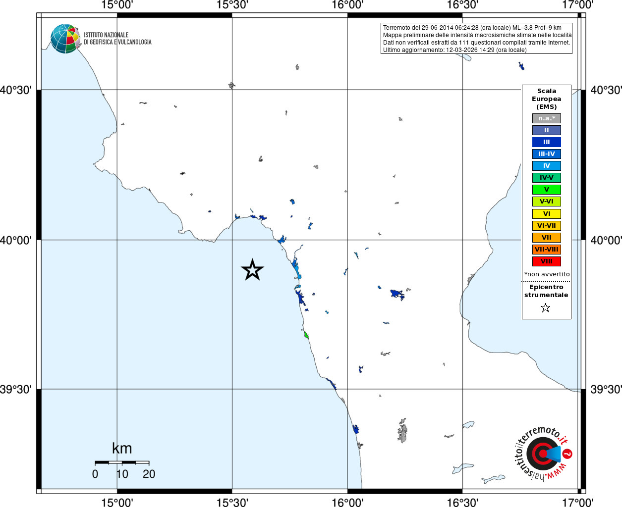 - Coordinate Epicentrali