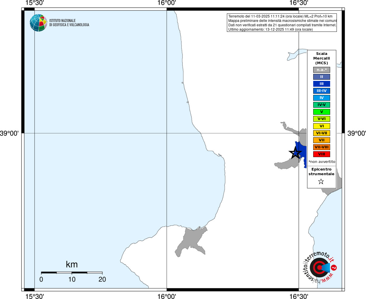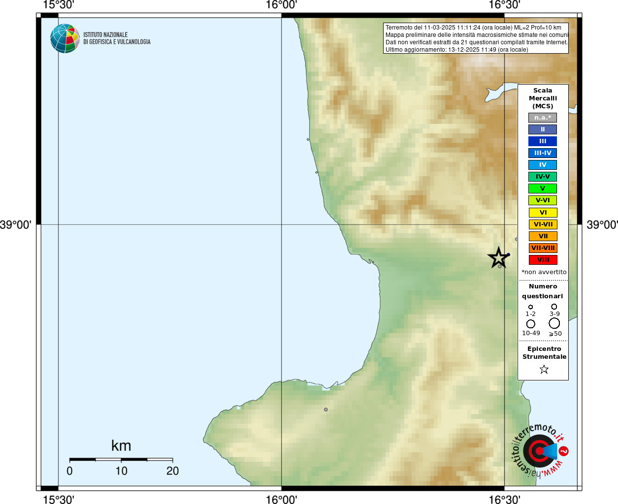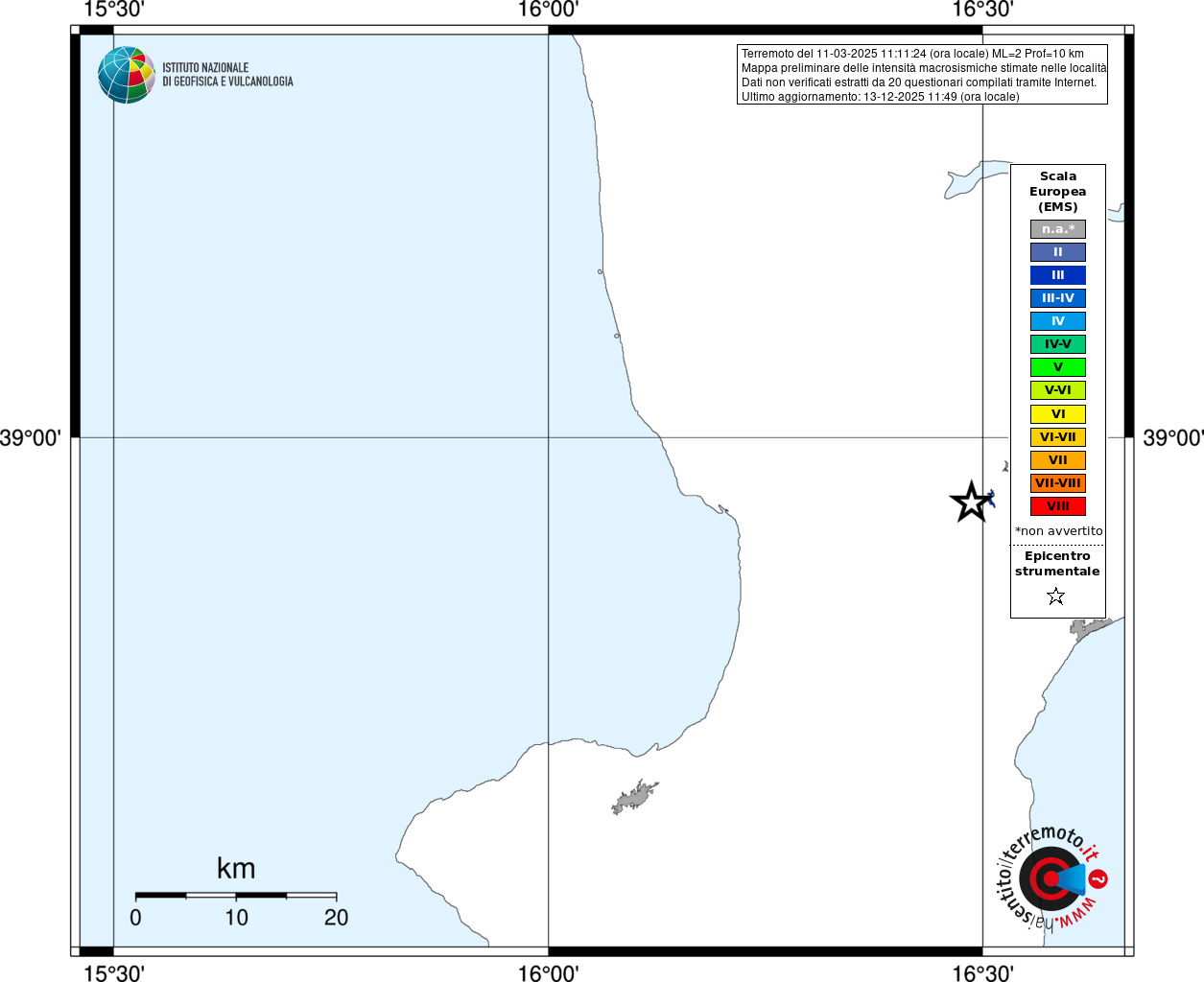 - Coordinate Epicentrali