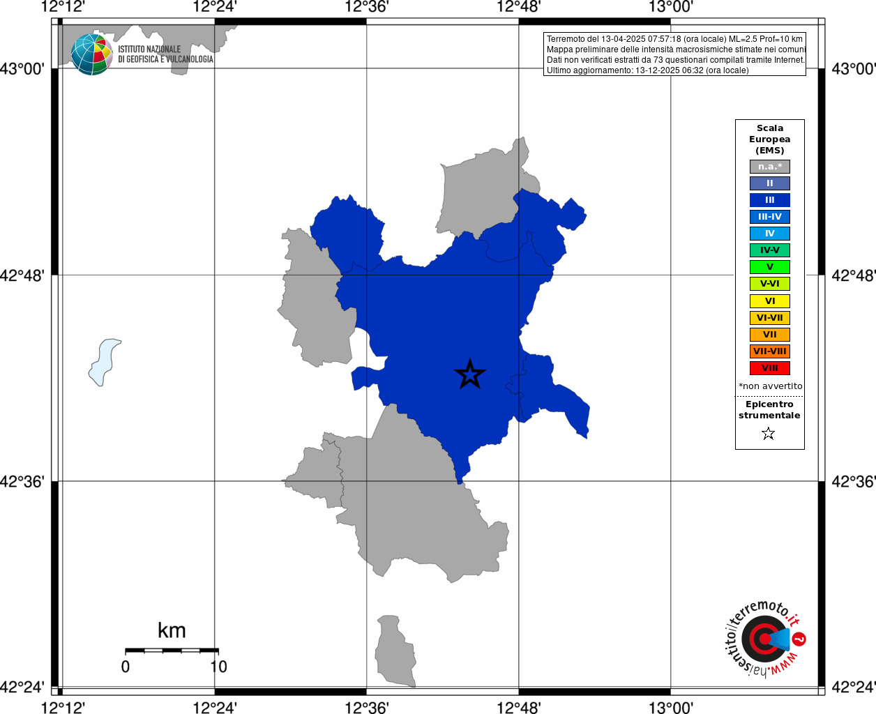 - 73 utilizzati per elaborare la mappa, su un totale di 84