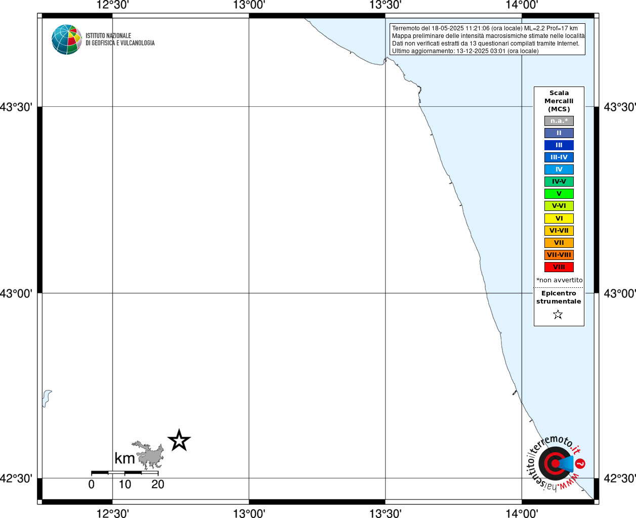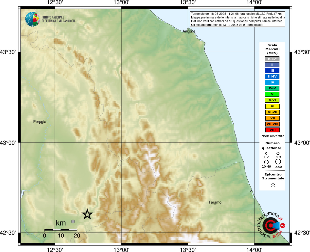 - 13 utilizzati per elaborare la mappa, su un totale di 13