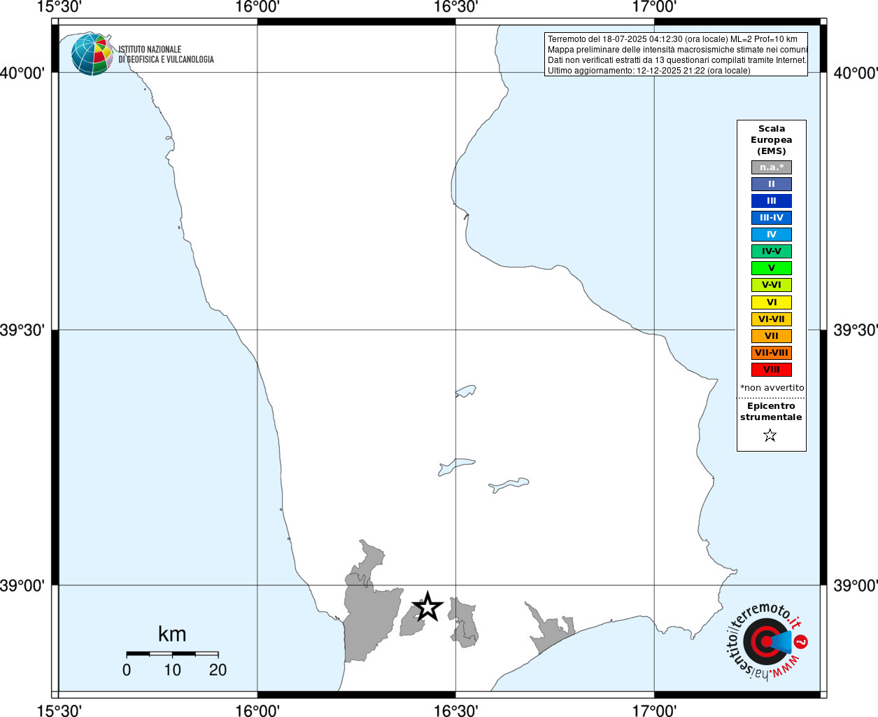 - Coordinate Epicentrali