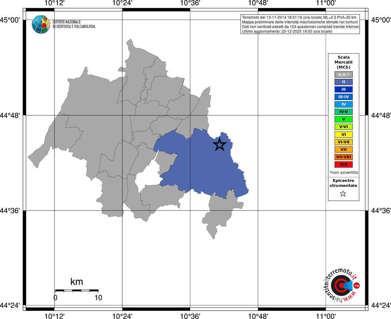 - 103 utilizzati per elaborare la mappa, su un totale di 103