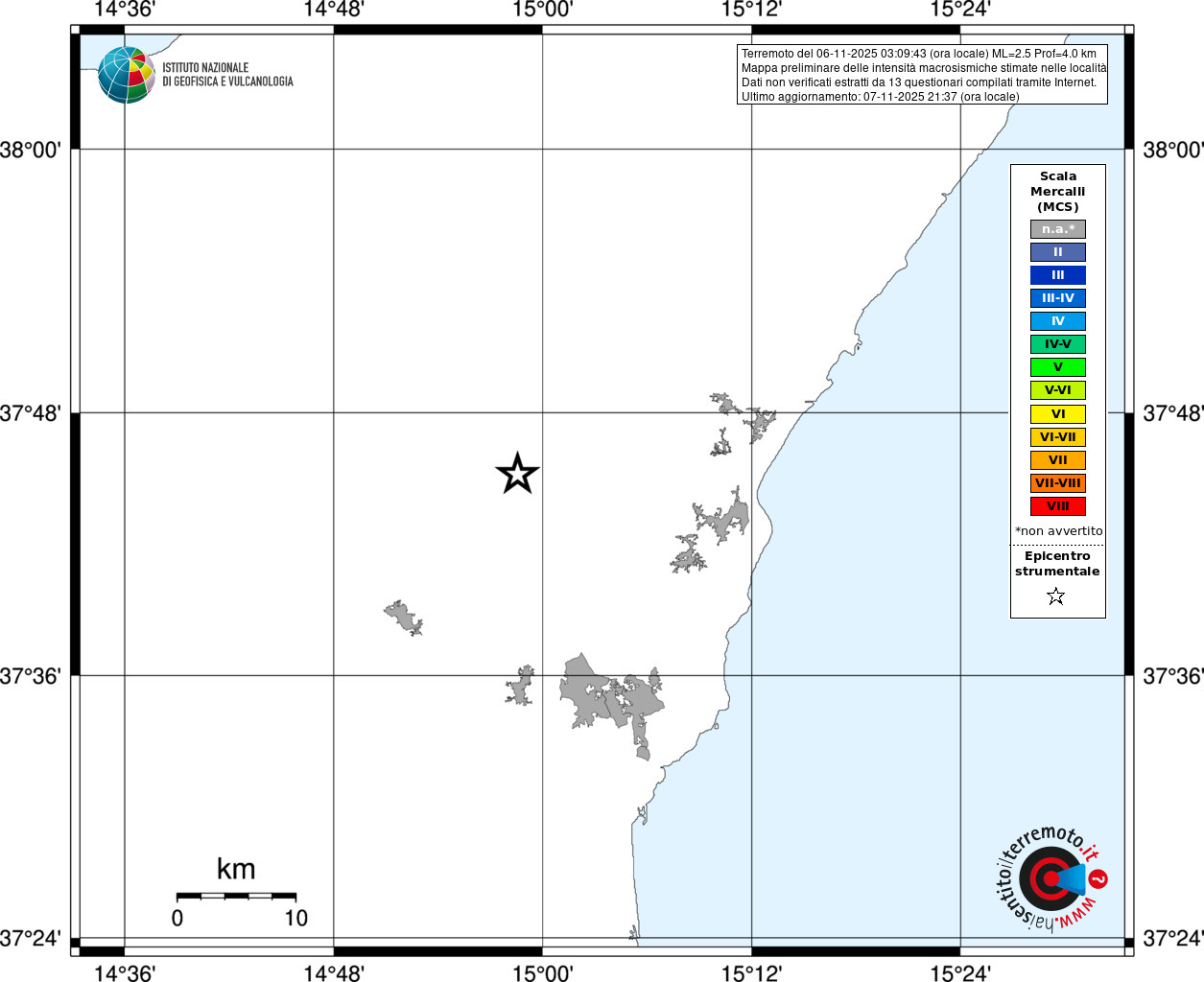- Coordinate Epicentrali