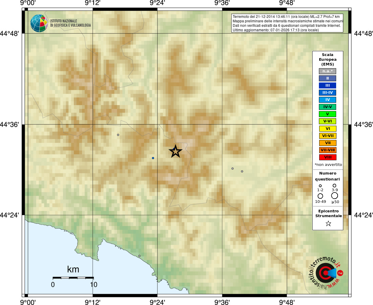 - Coordinate Epicentrali