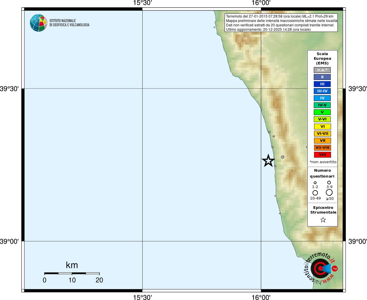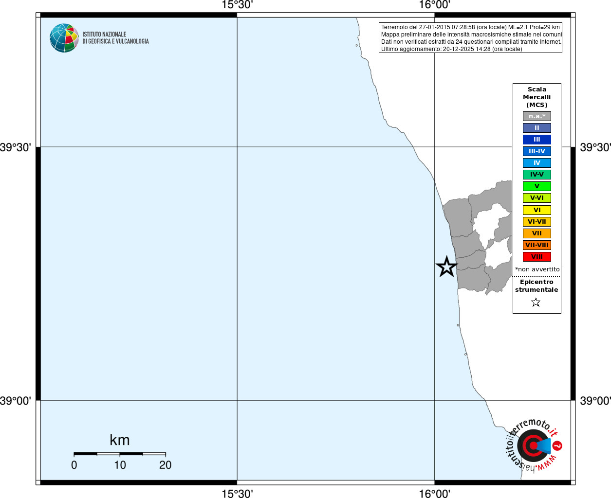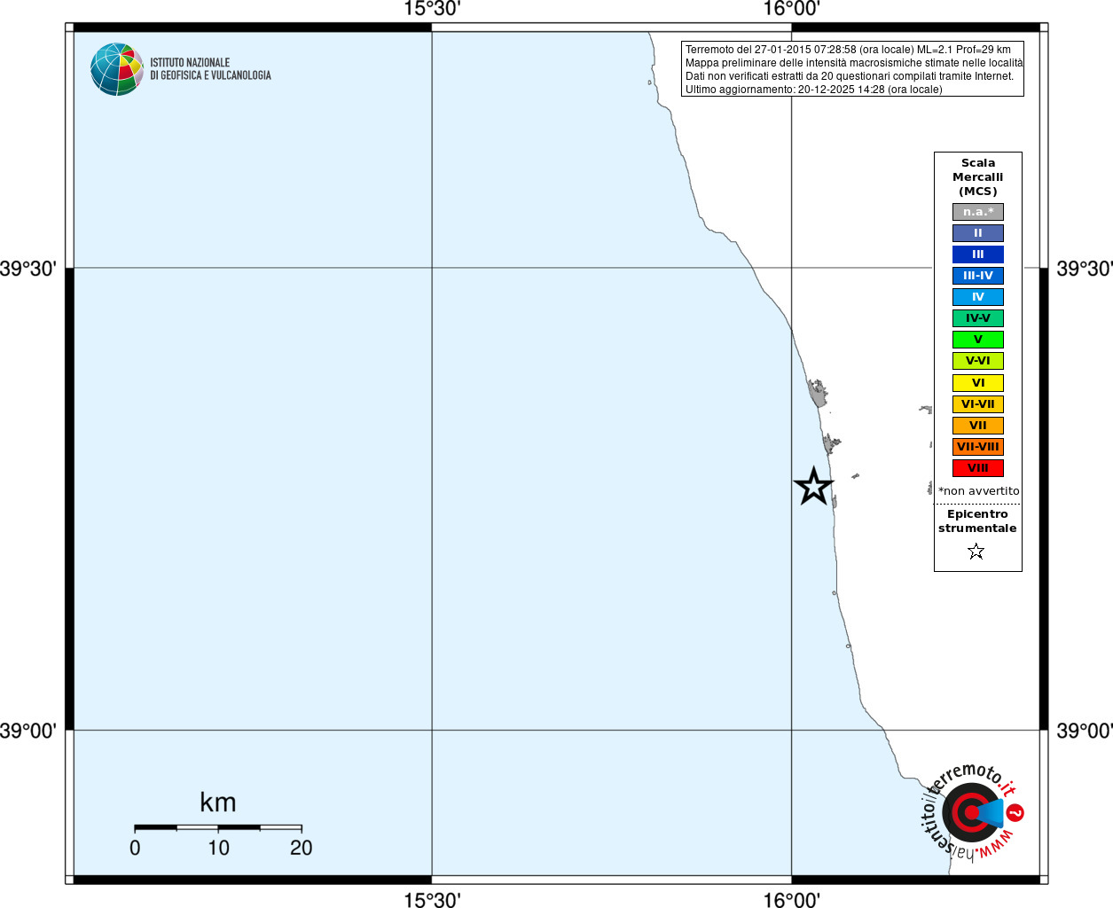 - Coordinate Epicentrali