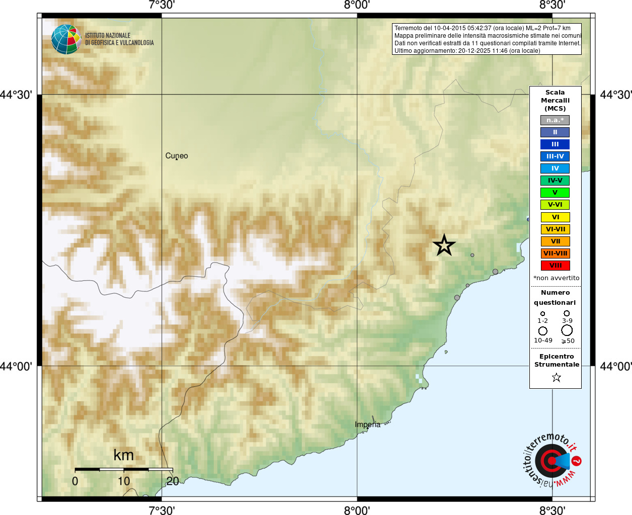 - Coordinate Epicentrali