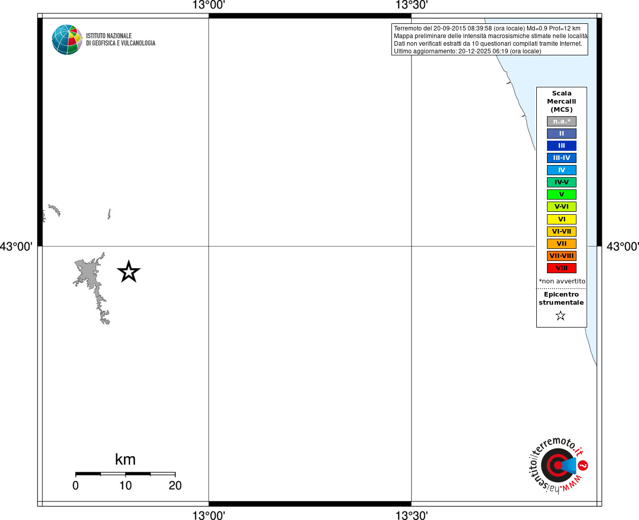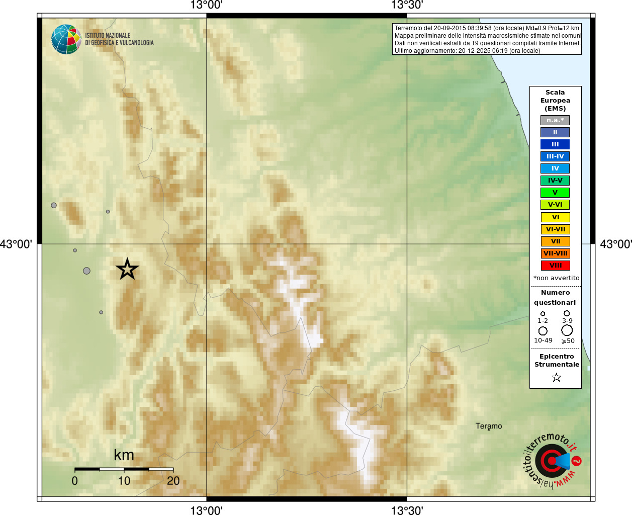 - 19 utilizzati per elaborare la mappa, su un totale di 20