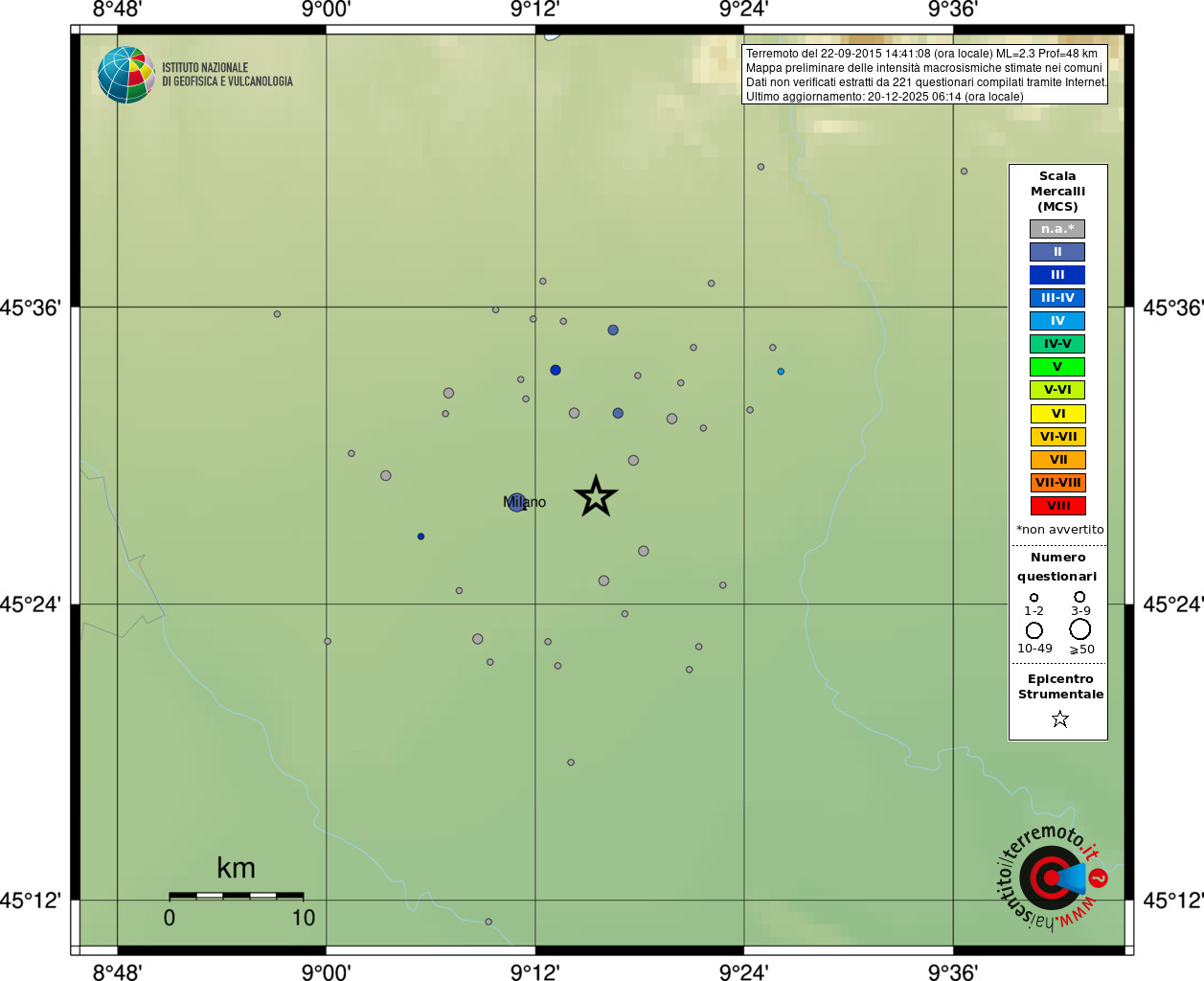 - 221 utilizzati per elaborare la mappa, su un totale di 226